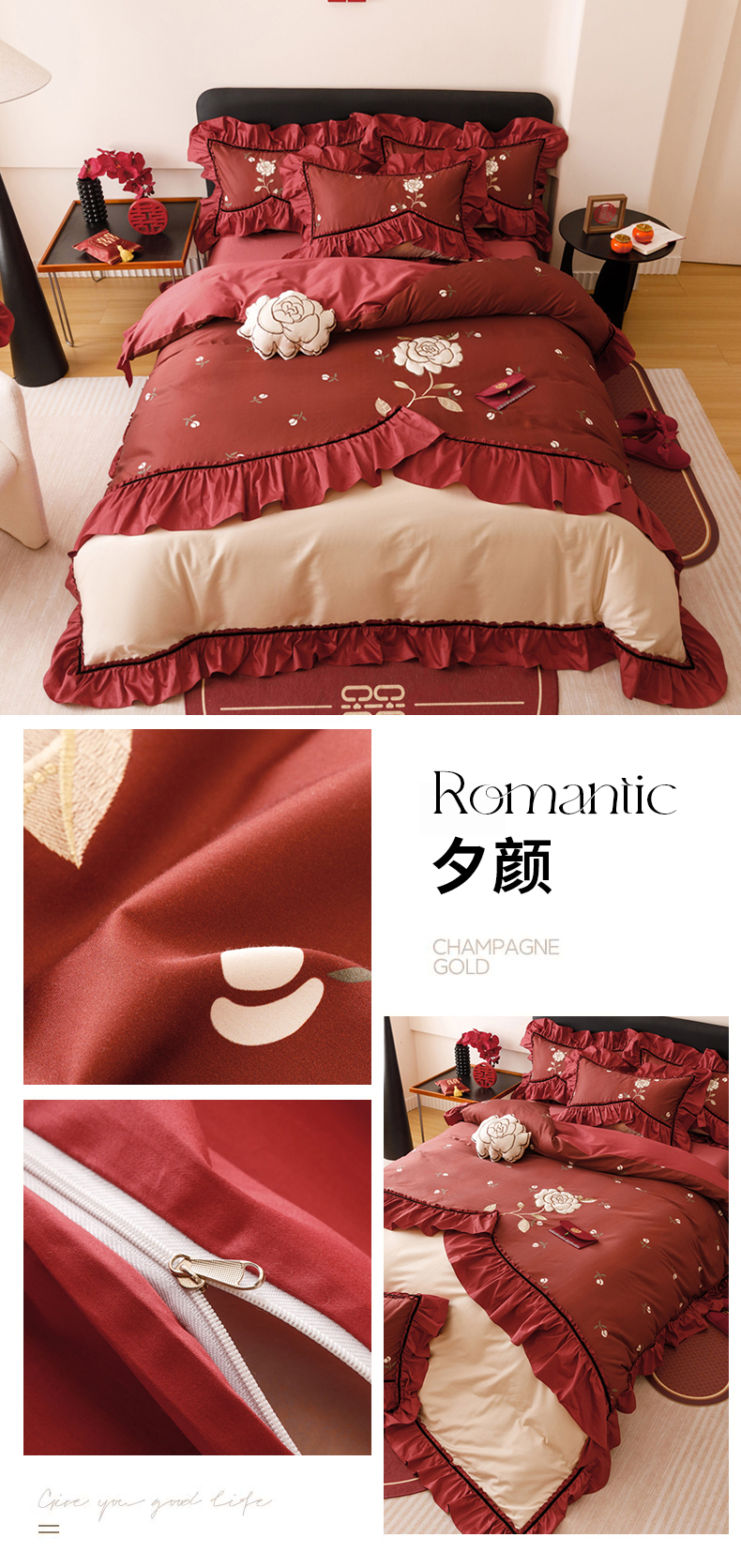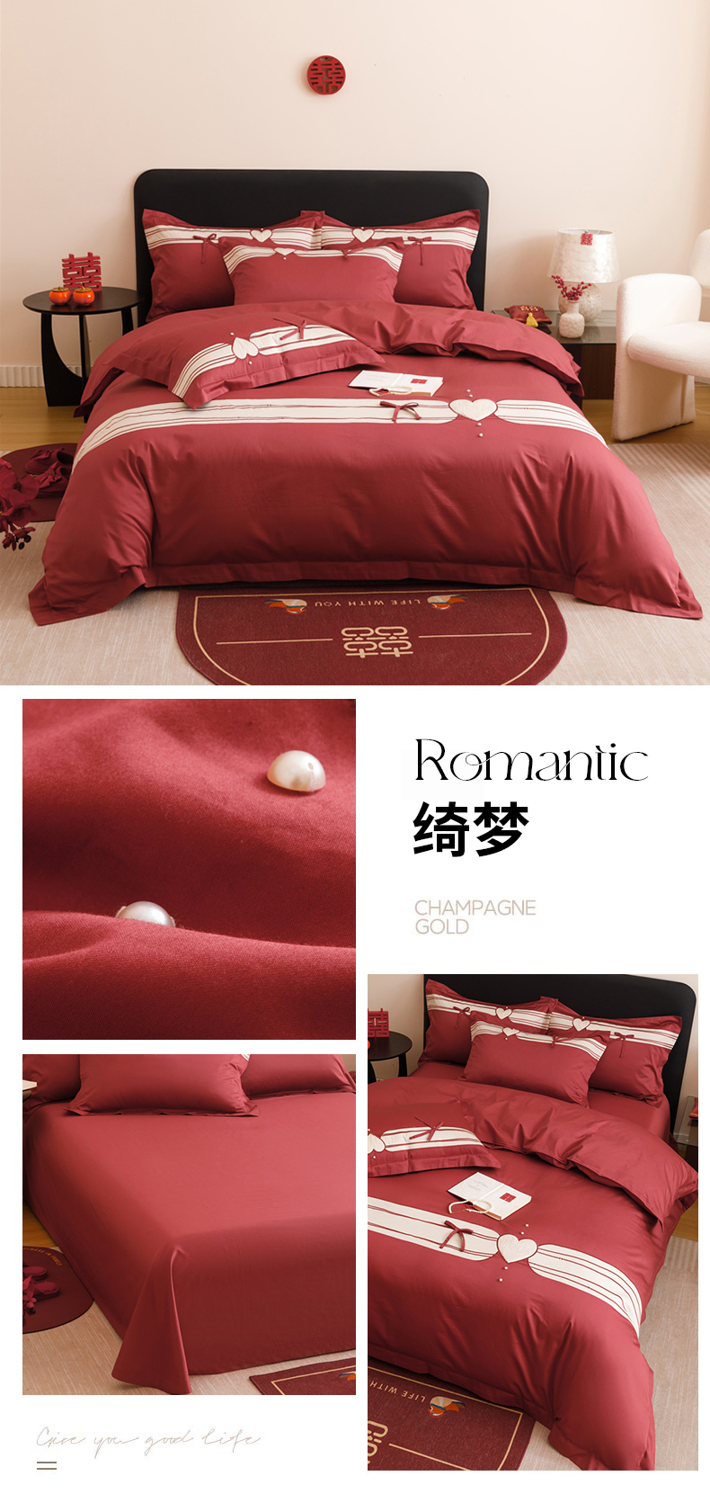 (总)宏羽纺家纺2025新款13372全棉全工艺喷气四件套-最美嫁衣,最美嫁衣