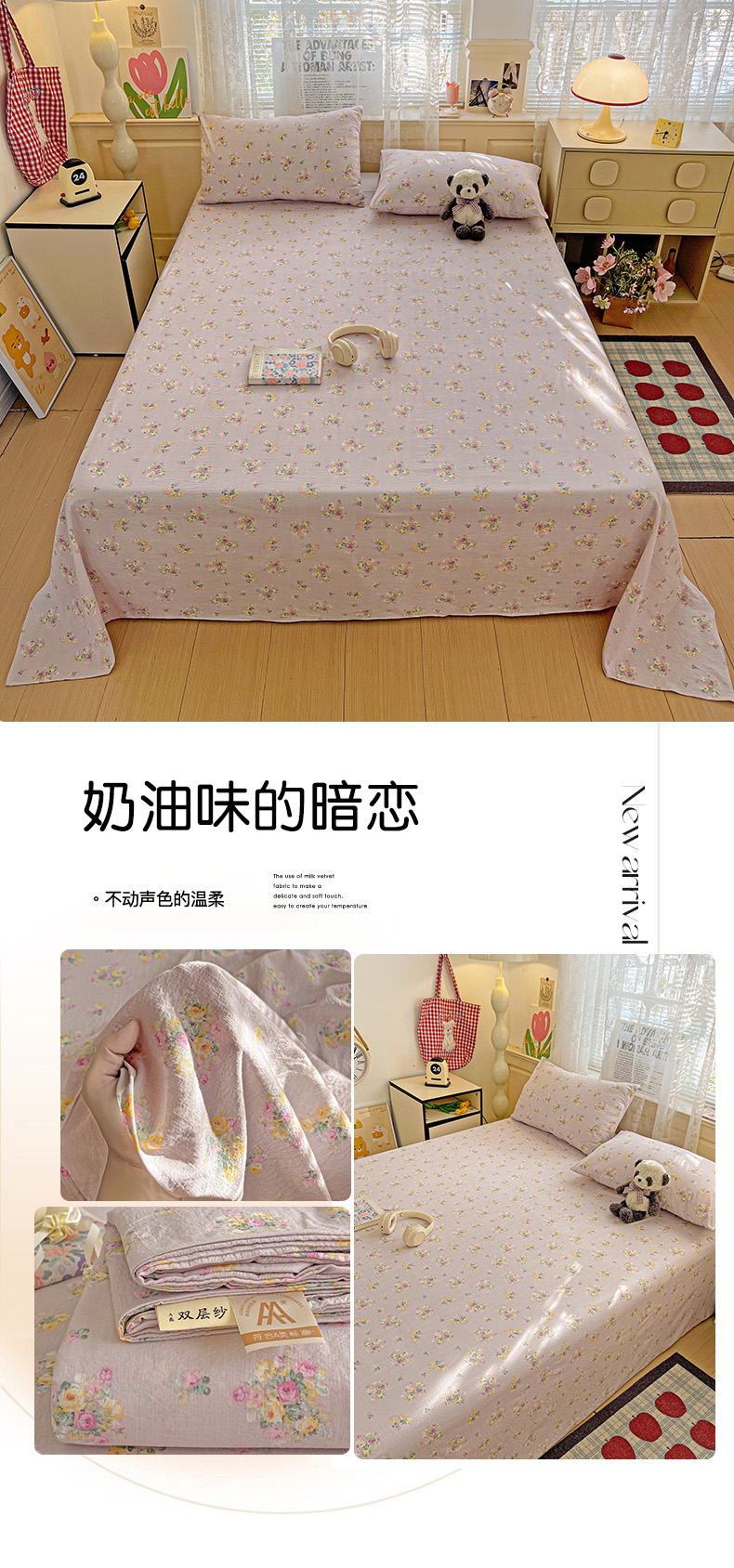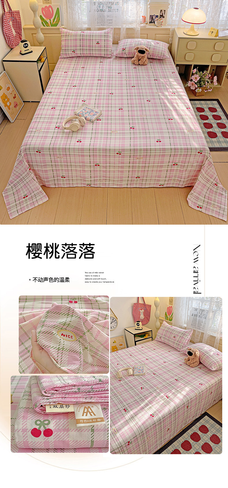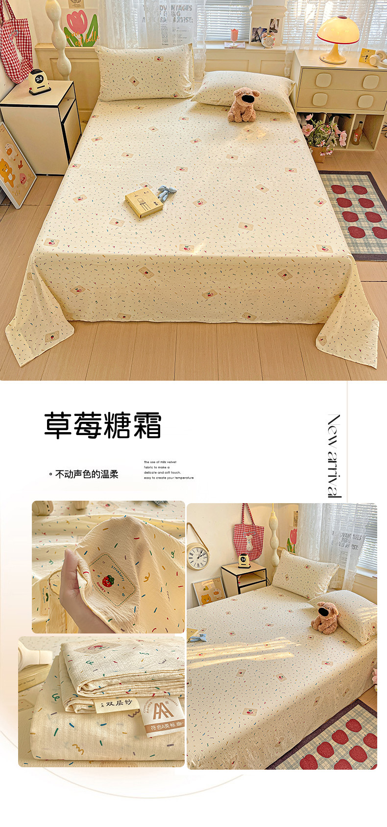 • 91家纺网 家纺一手货源 找家纺 初念 2025春夏新款云感纱印花单床单 草莓糖霜