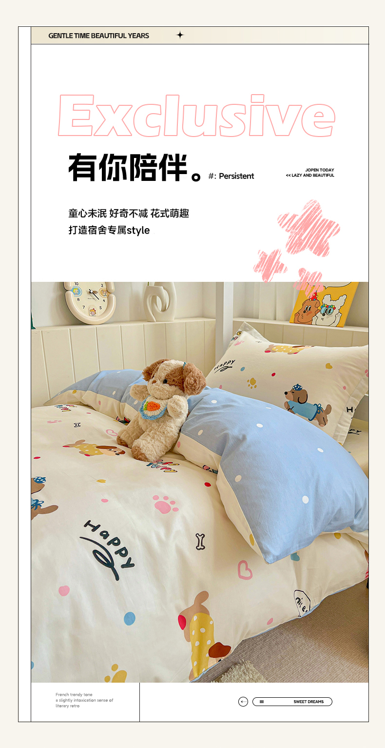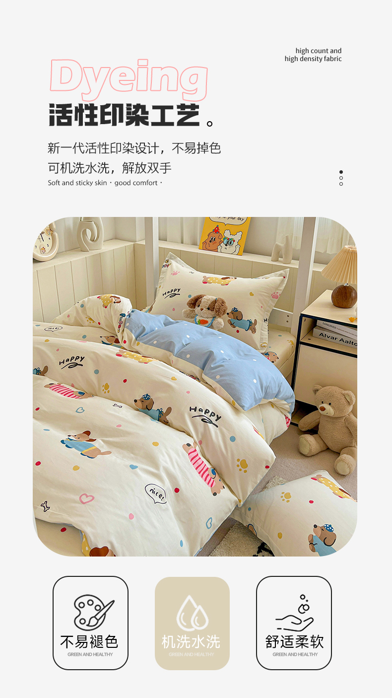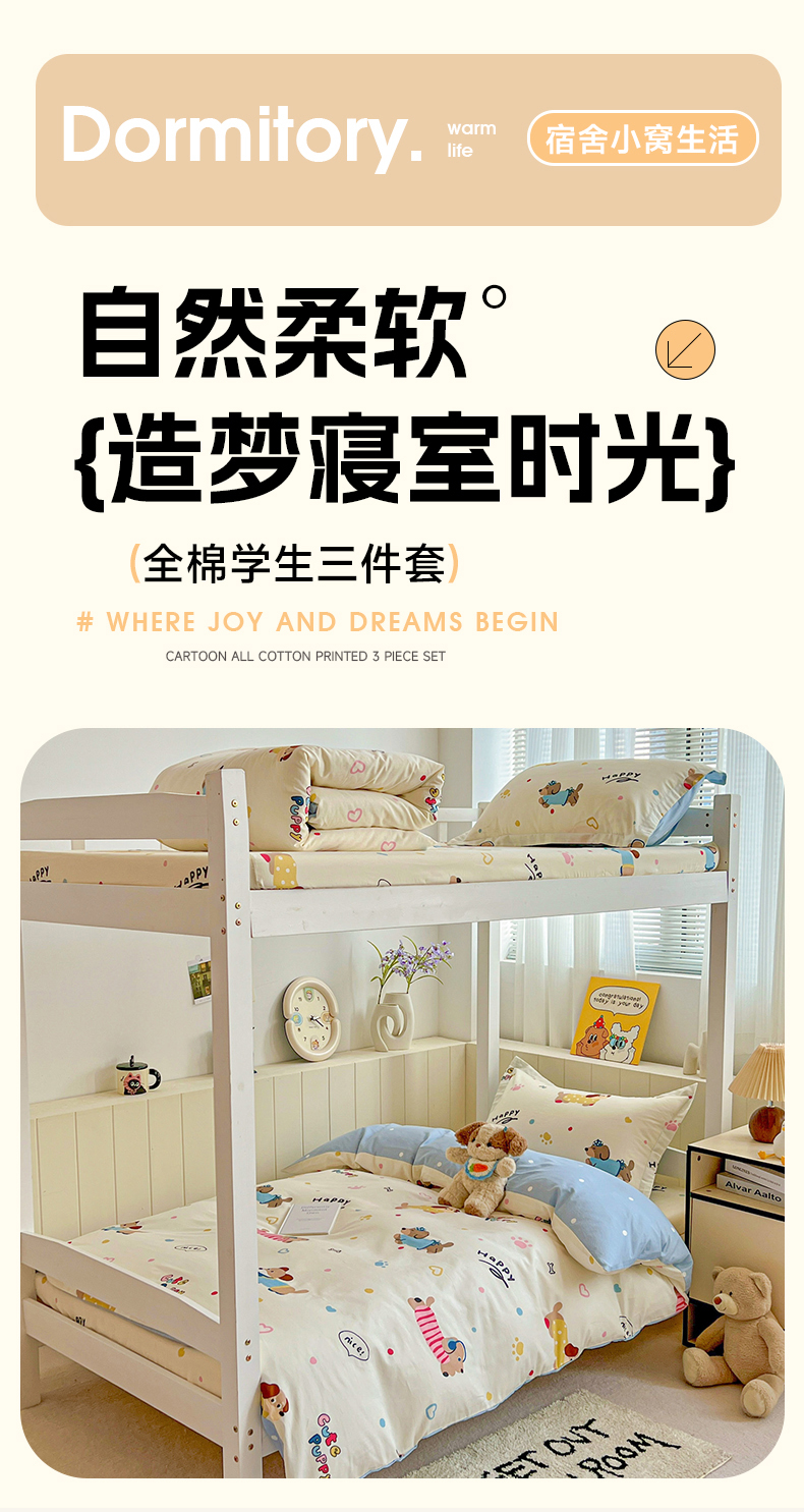 商品名称:春雨家居 2025新款学生季全棉三件套(预留缩水) 21.童趣蜜歌