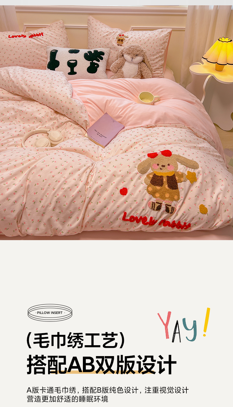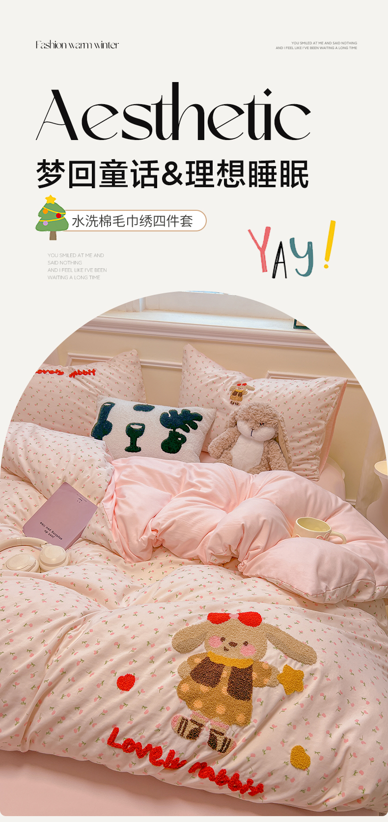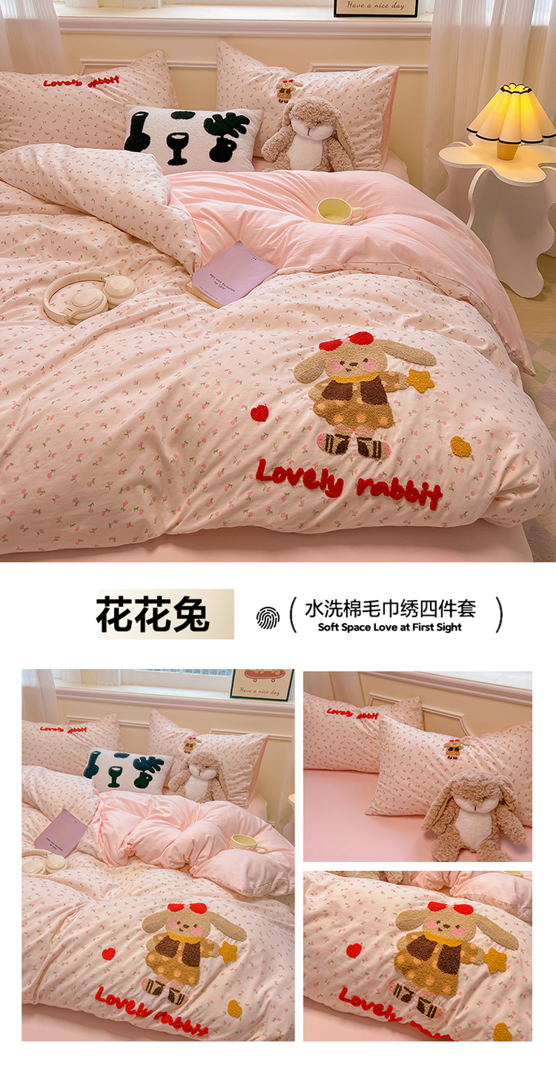 当前位置: 91家纺网 > 商品网购 > 床品套件 > 四件套 > 毛巾绣四件套 > 韩巢家纺 2025新款直播热销款毛巾绣四件套可爱超柔学生季宿舍床上三件套(提供卖家秀) 花花兔