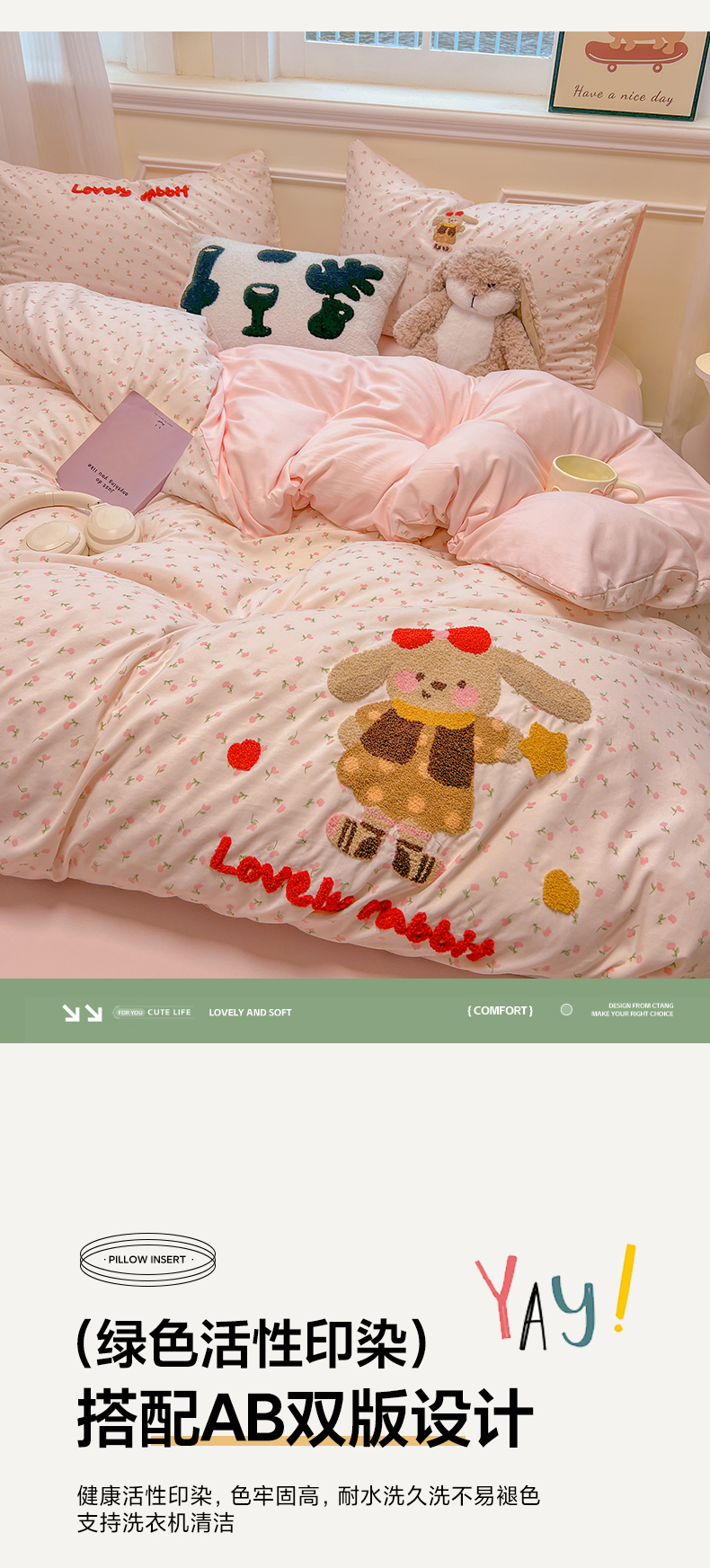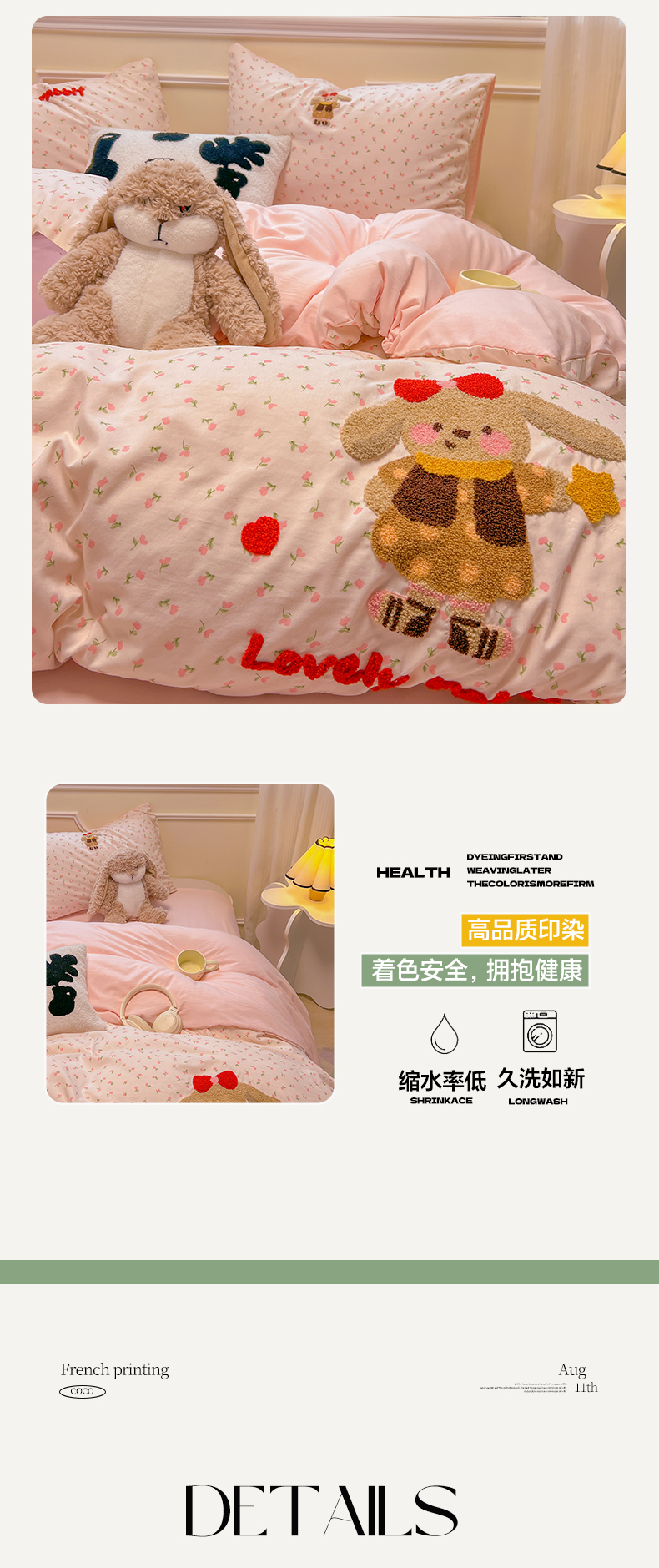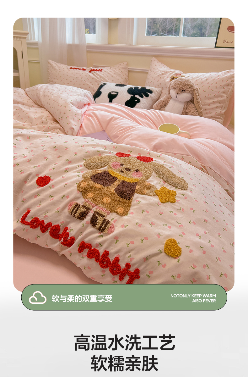 当前位置: 91家纺网 > 商品网购 > 床品套件 > 四件套 > 毛巾绣四件套 > 韩巢家纺 2025新款直播热销款毛巾绣四件套可爱超柔学生季宿舍床上三件套(提供卖家秀) 花花兔