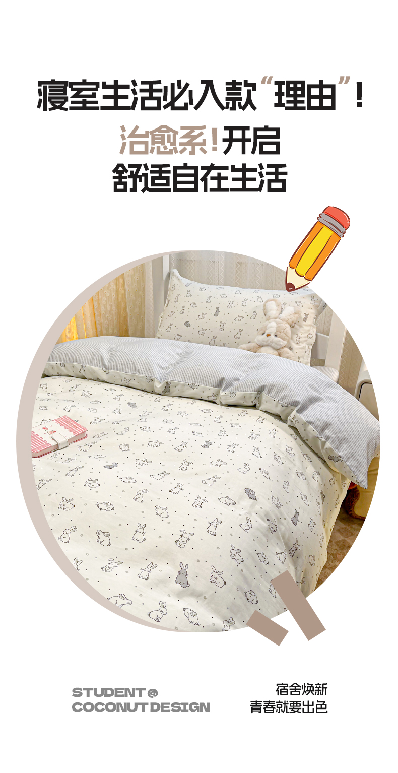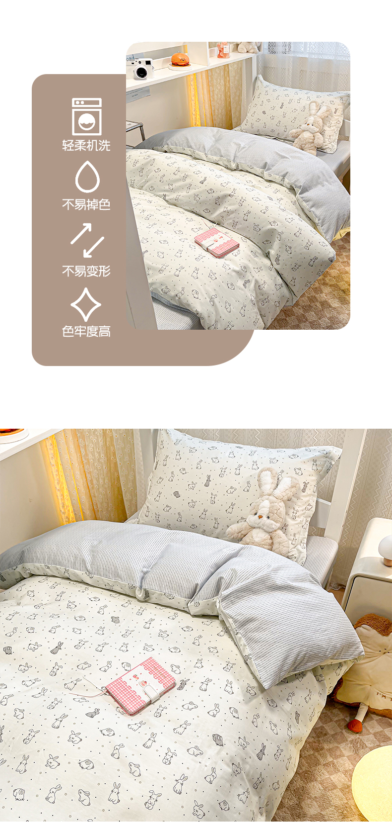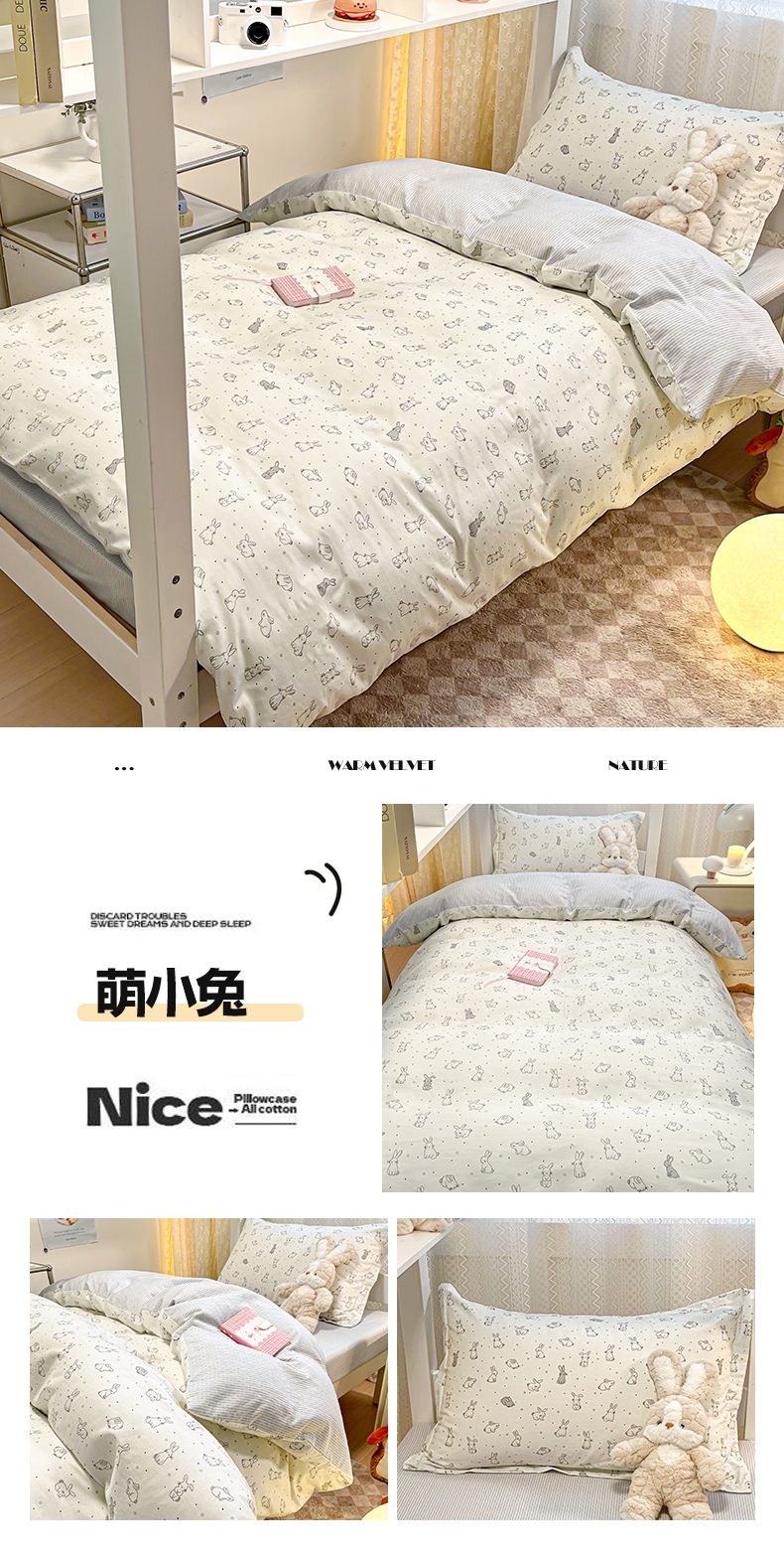 当前位置: 91家纺网 > 商品网购 > 床品套件 > 三件套 > 涵宸家纺 2025新款学生图-全棉印花-甜系三件套四件套 B萌小兔