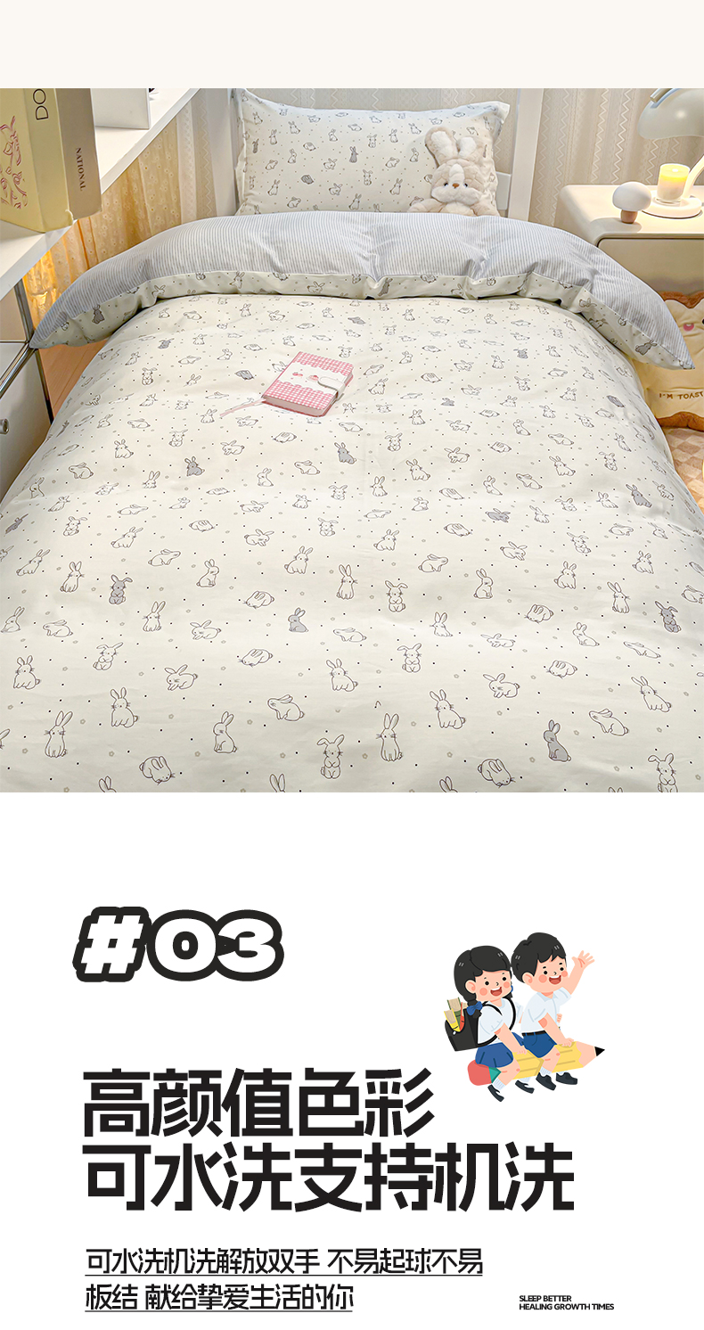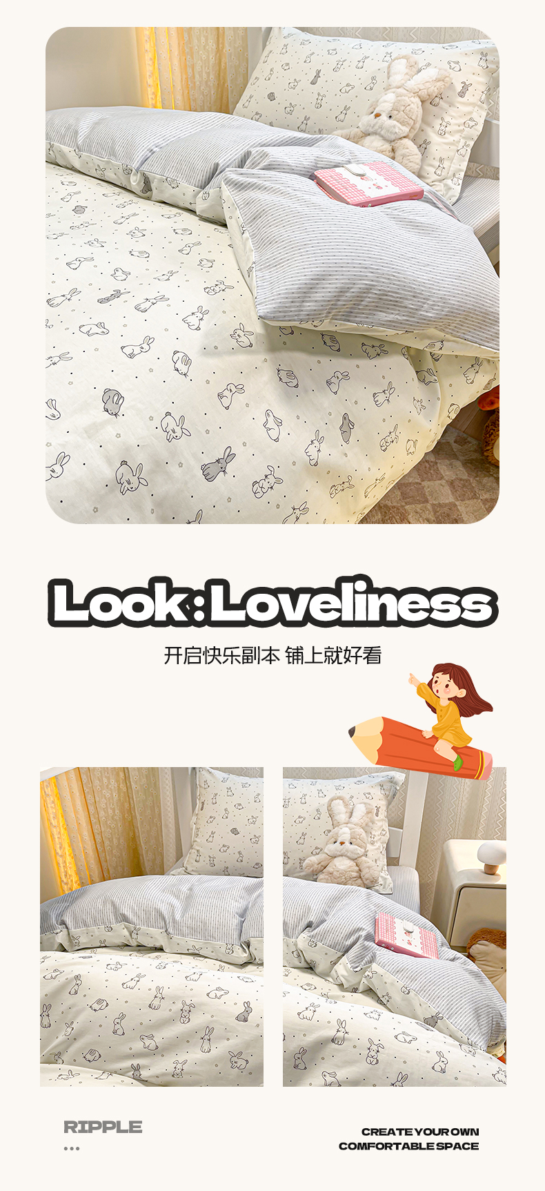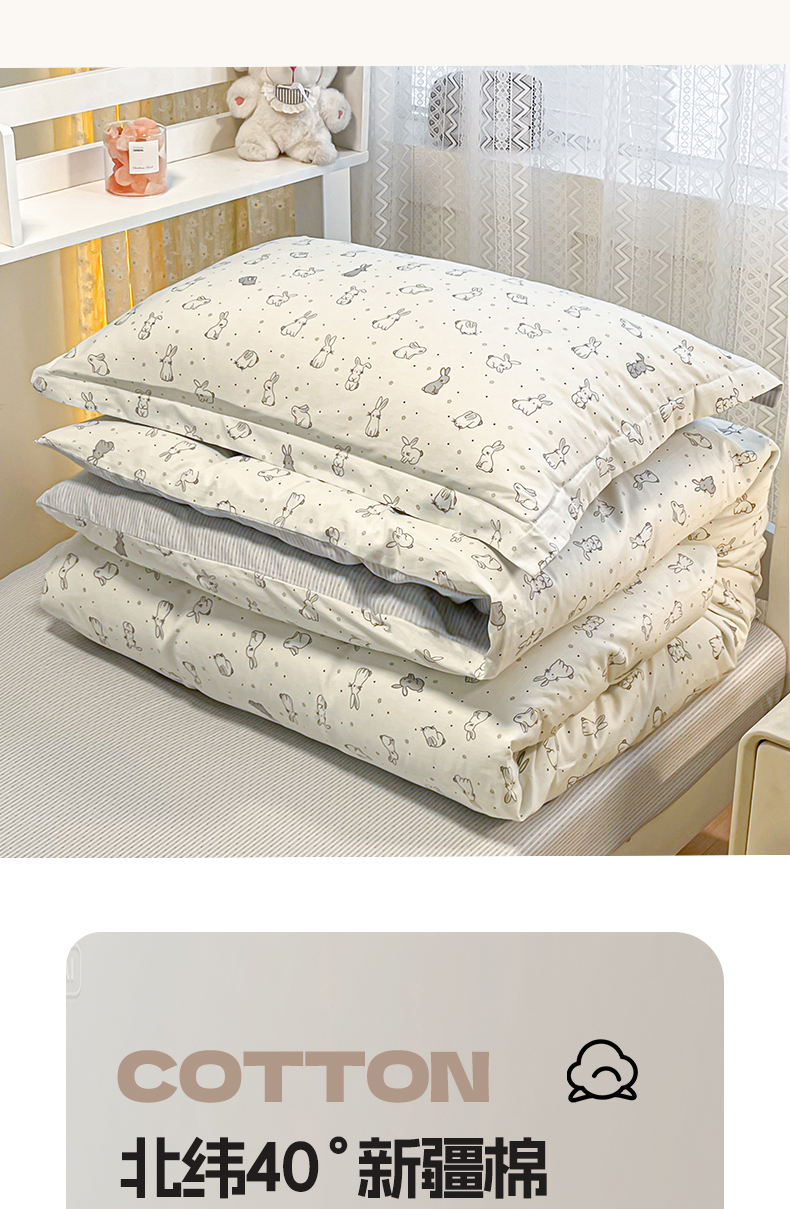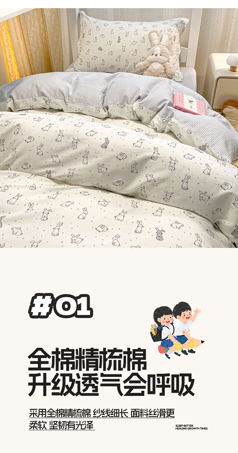 当前位置: 91家纺网 > 商品网购 > 床品套件 > 三件套 > 涵宸家纺 2025新款学生图-全棉印花-甜系三件套四件套 B萌小兔