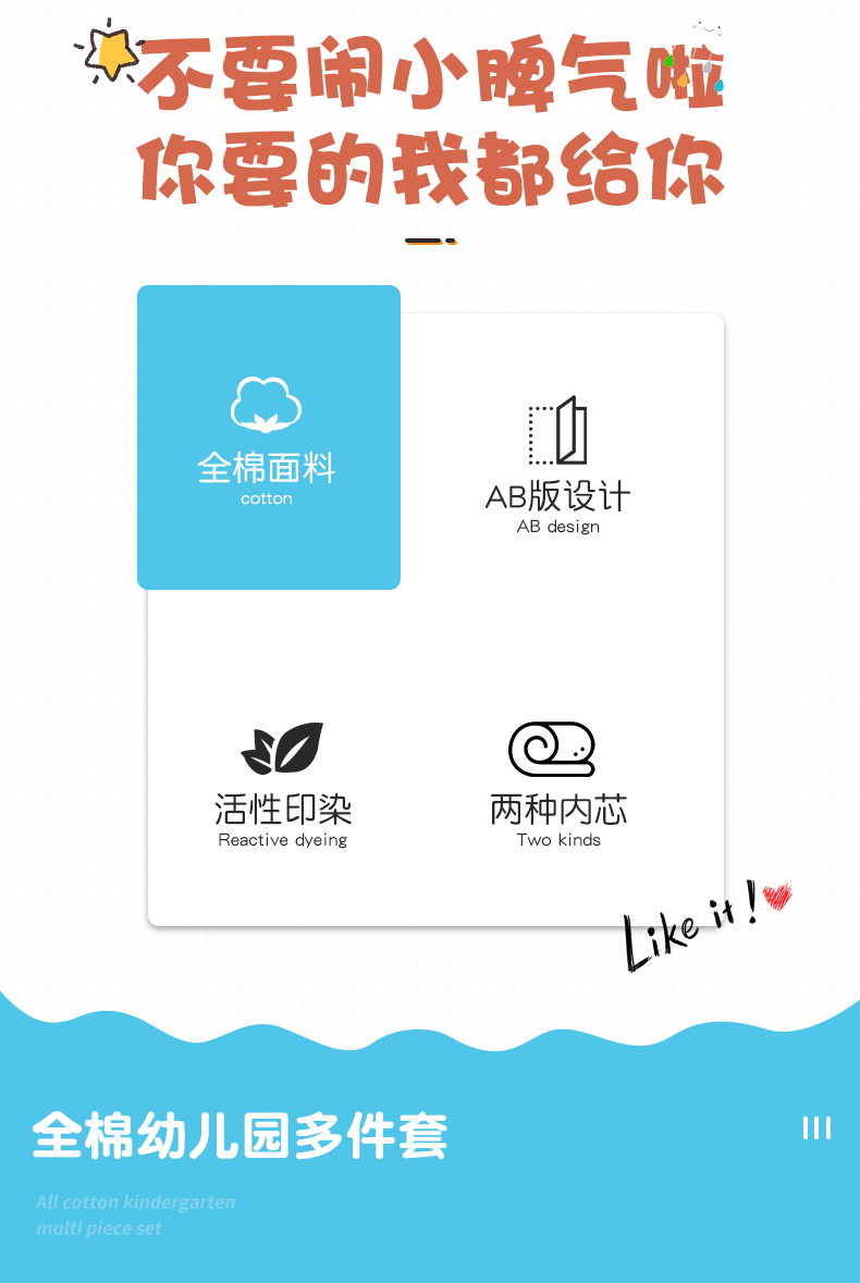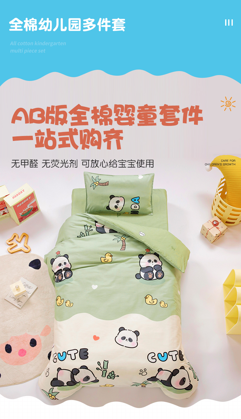 当前位置: 91家纺网 > 商品网购 > 婴童用品 > 婴童三件套 > 鱼宝2026新款全棉幼儿园套件--萌趣系列 功夫熊猫