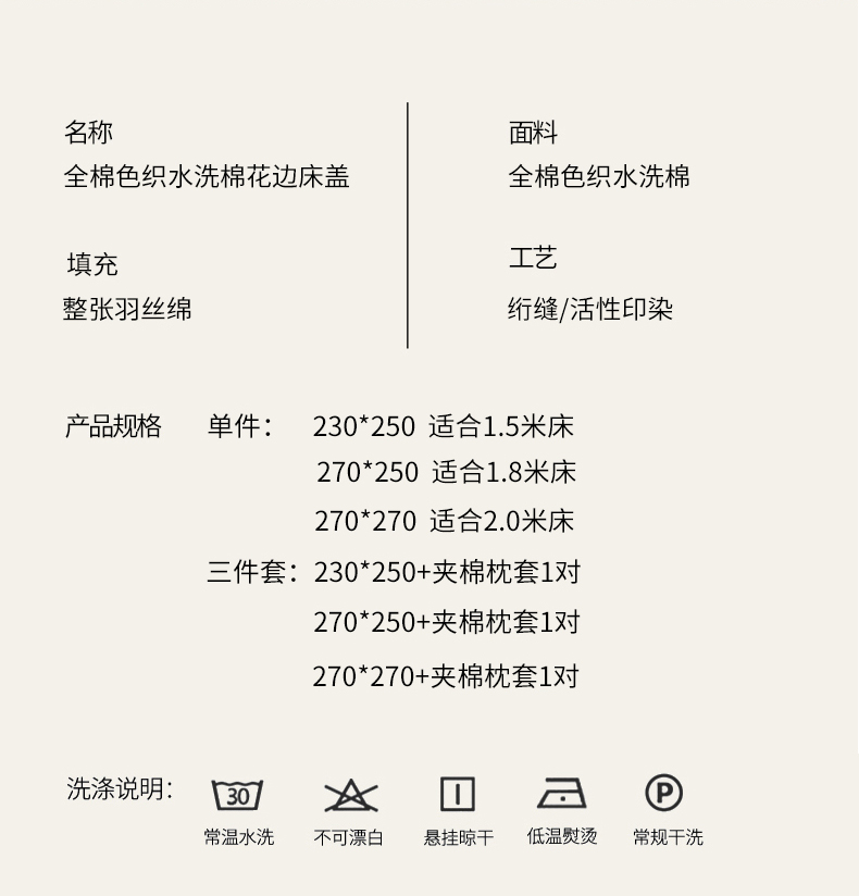 270*270cm单床盖 | ¥130.00 |
