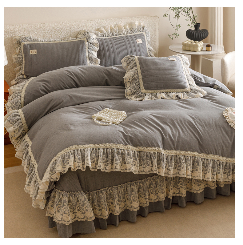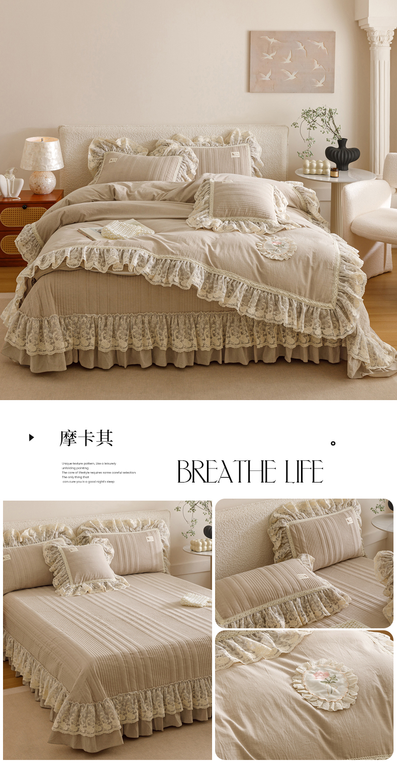 (总)菊上家纺 2025新款全棉色织水洗棉洛丽塔公主床盖款四件套