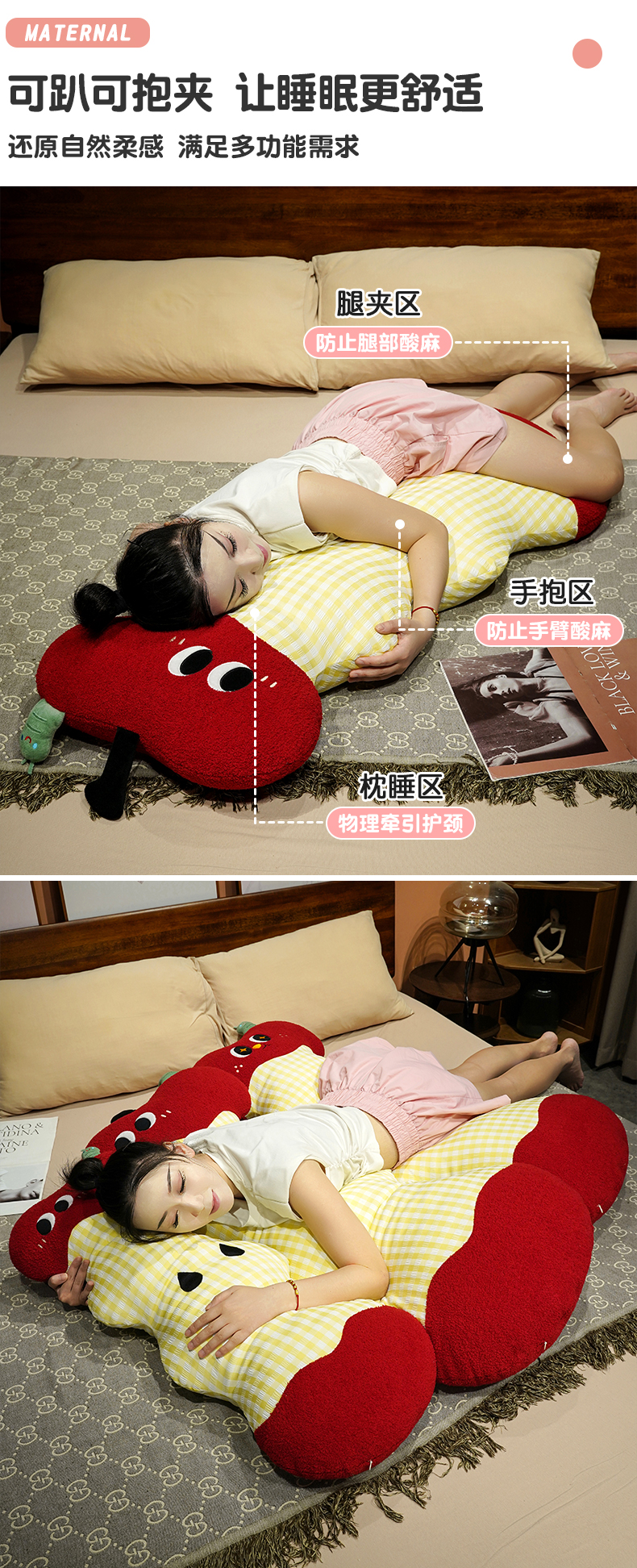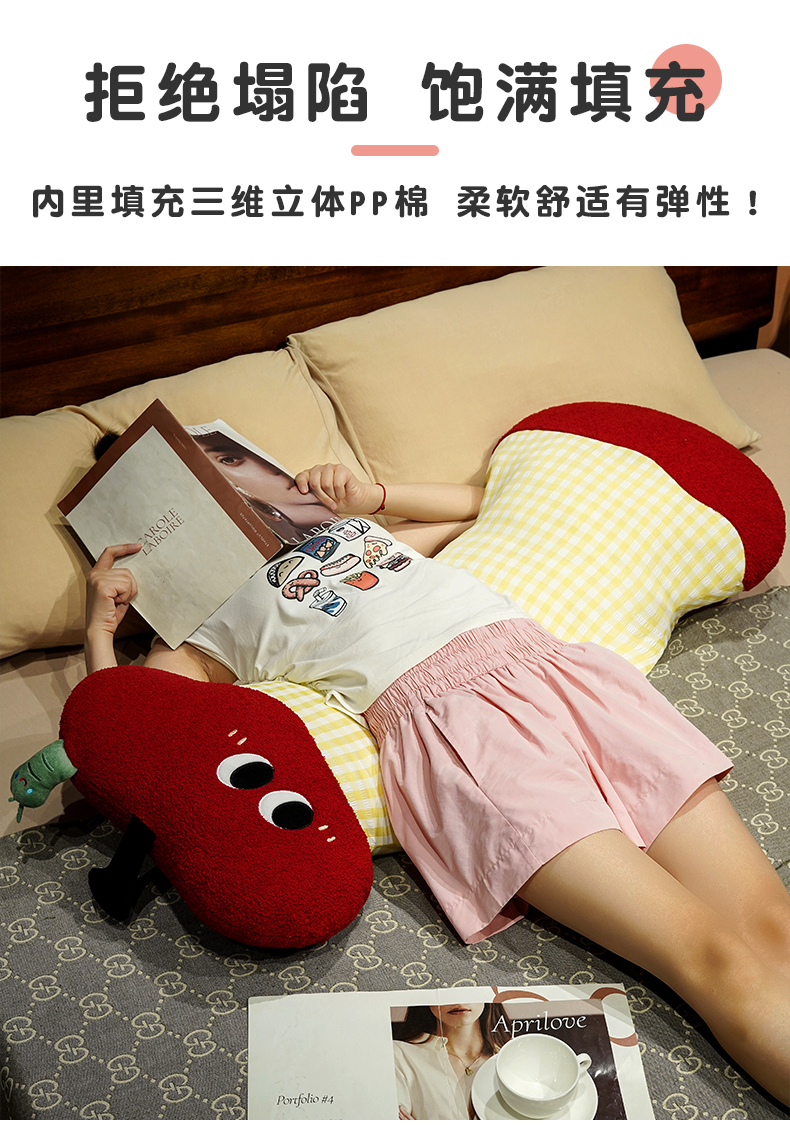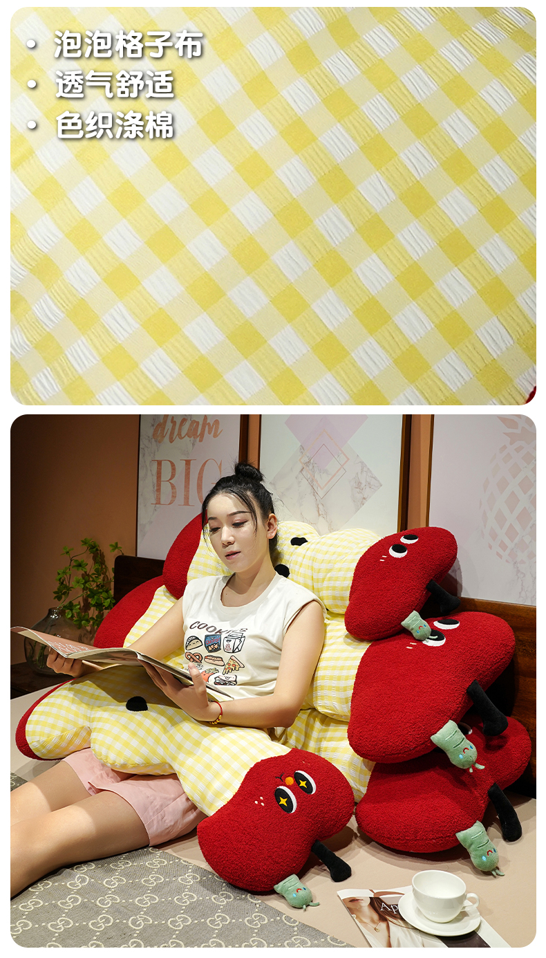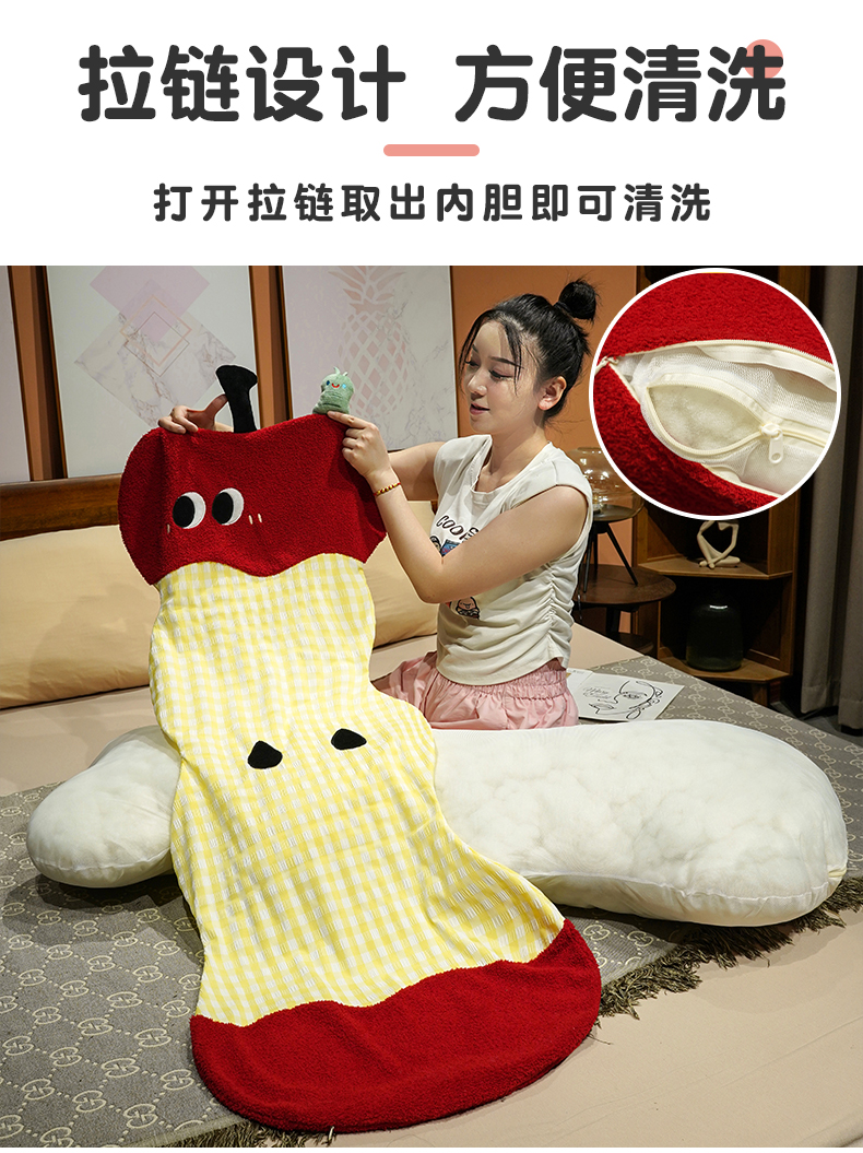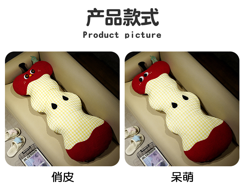 (总)仟亿莱 2026新款惊讶苹果小虫大脚床头靠垫,拥抱惊讶半果,拥抱惊讶全果,组合图(仅供展示不可下单)
