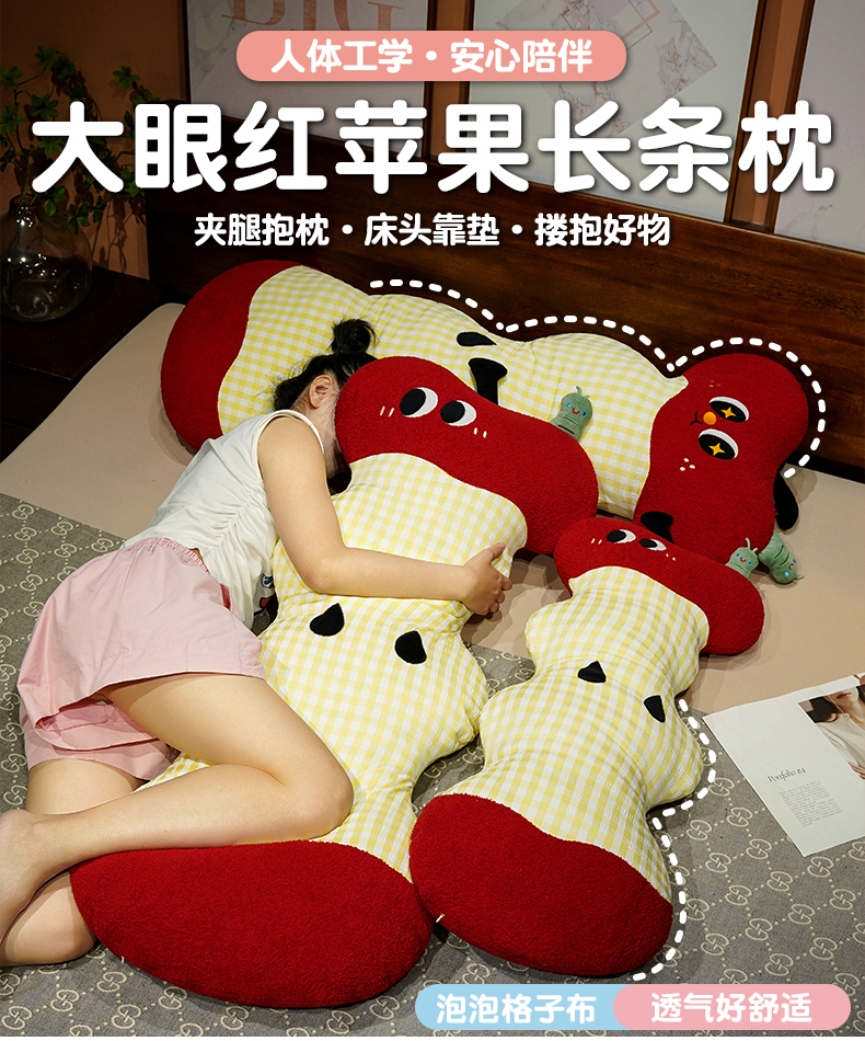 仟亿莱 2025新款大眼红苹果云朵长条睡觉抱枕 呆萌云朵长条苹果