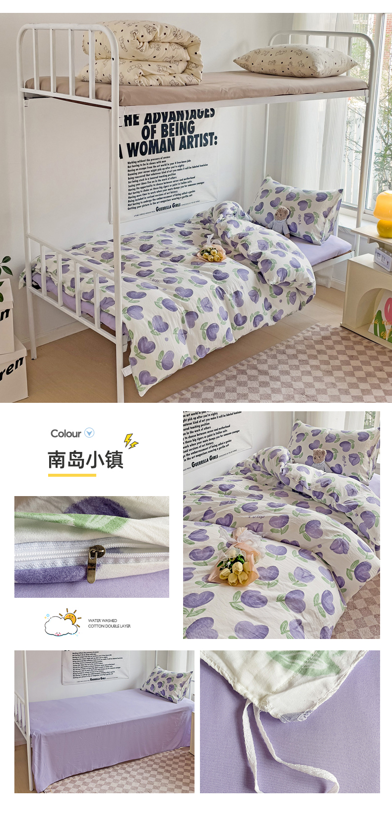 当前位置: 91家纺网 > 商品网购 > 床品套件 > 三件套 > 芷凡家纺 2025新款水洗棉双层纱学生三件套宿舍上下铺三件套 奶猫