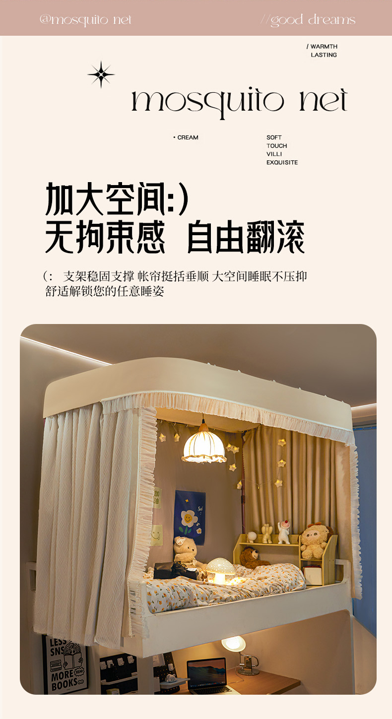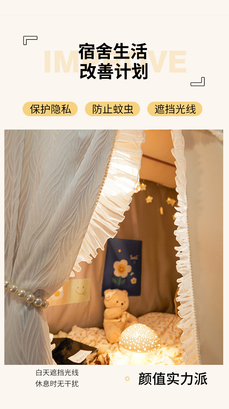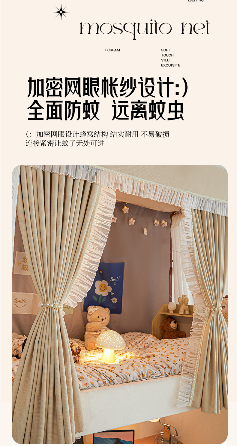 飞轮海蚊帐 2025新款强遮光防蚊学生蚊帐-XZ-99(靠墙帘选配)熊猫宝,熊猫宝
