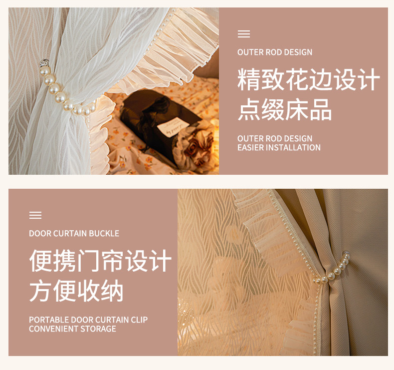 商品名称:飞轮海蚊帐 2025新款雪尼尔法式遮光床帘-XD系列 律动-香槟