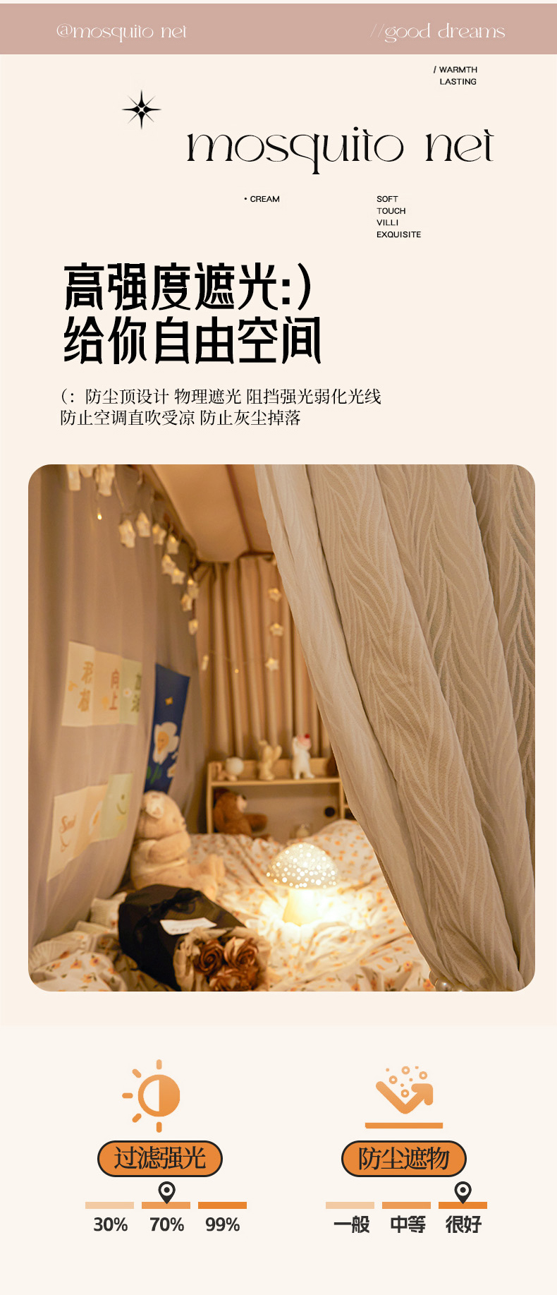 (总)飞轮海 2025新款全包遮光防蚊蚊帐Z31,黛蓝,奶油黄,香槟