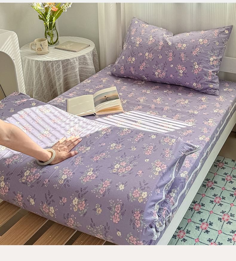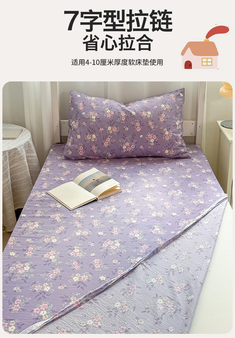 多品家纺 2025新款超柔双层纱学生宿舍单品床垫套 紫烟