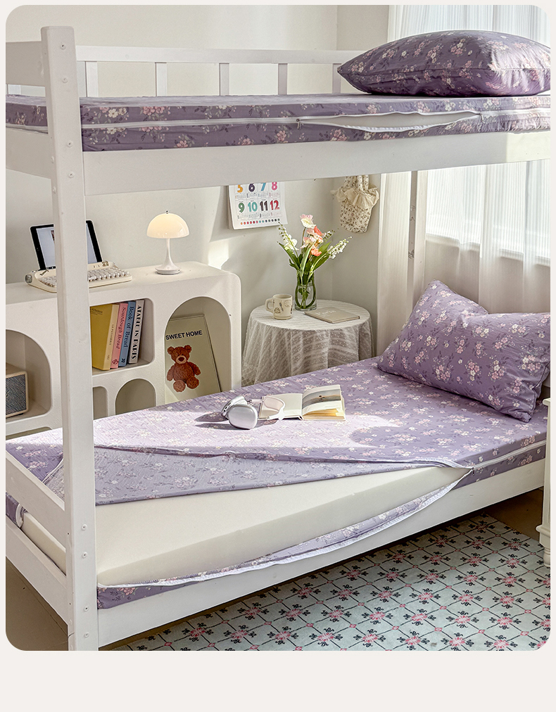 • 91家纺网 家纺一手货源 找家纺 多品家纺 2025新款超柔双层纱学生宿舍单品床垫套 紫烟
