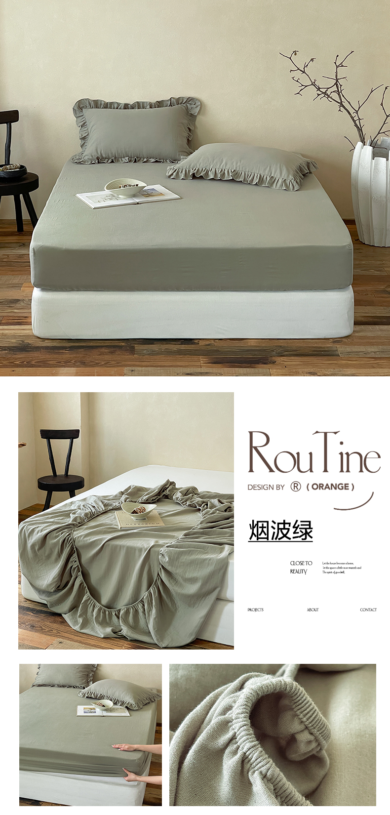 商品名称:三味舒屋 2025新款花边美学全棉双层纱单品单床笠 烟波绿