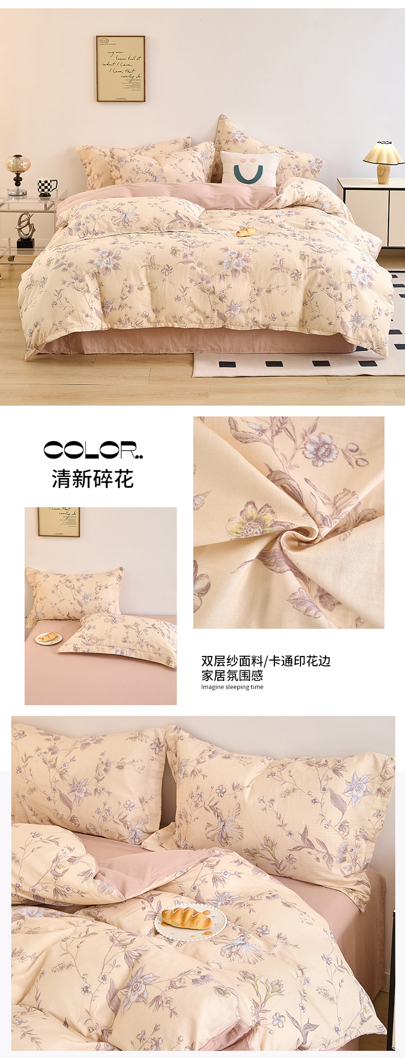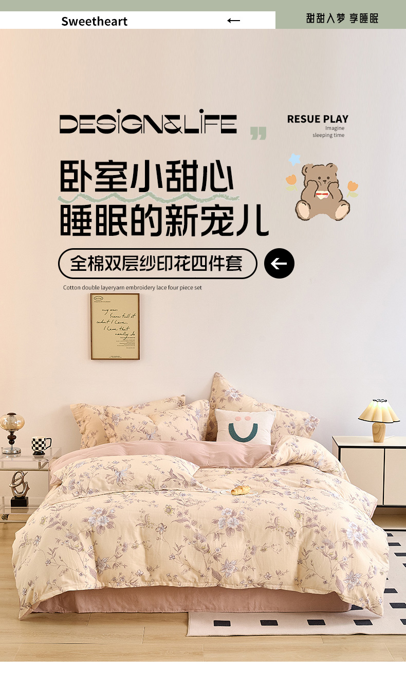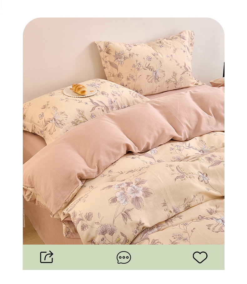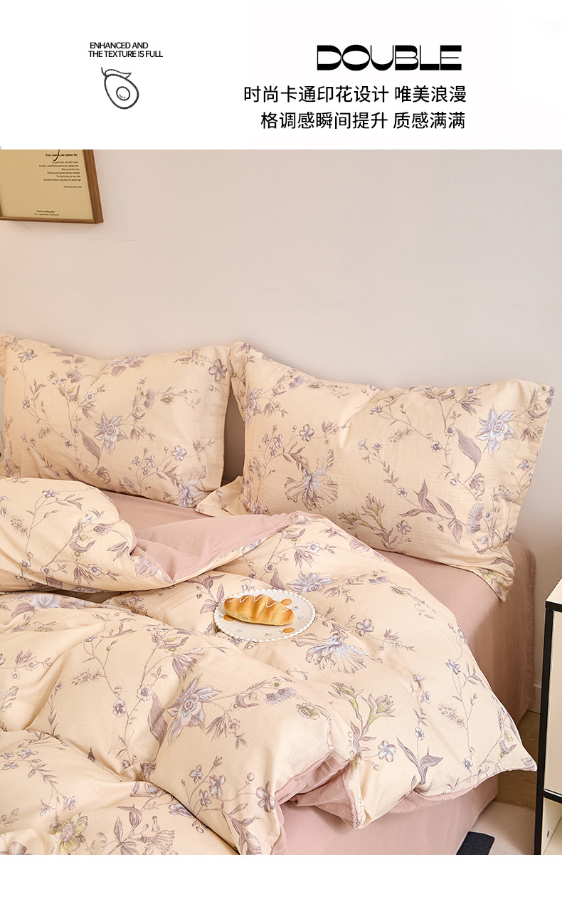 当前位置: 91家纺网 > 商品网购 > 床品套件 > 四件套 > 全棉普通四件套 > 2025新款全棉双层纱印花四件套(第二批)清新碎花