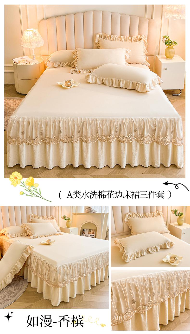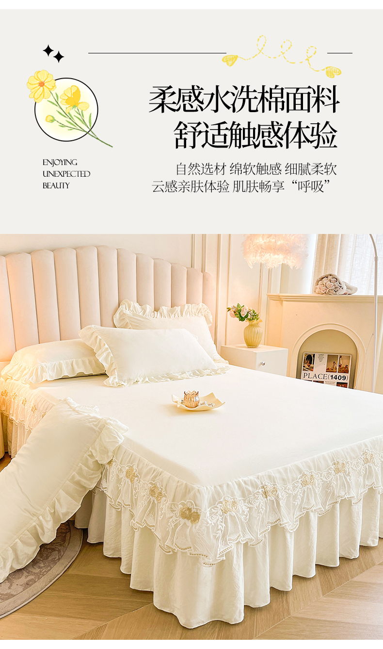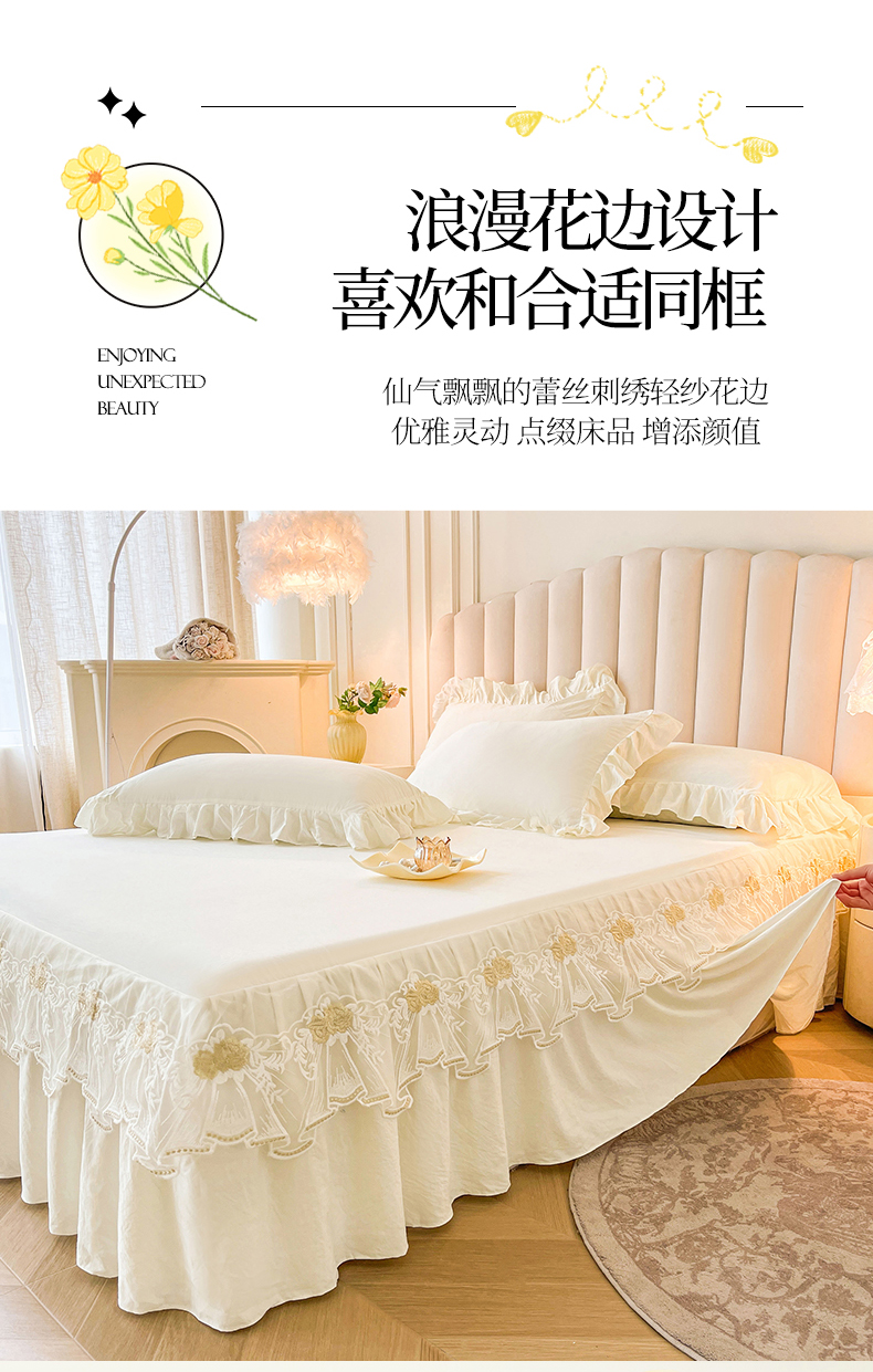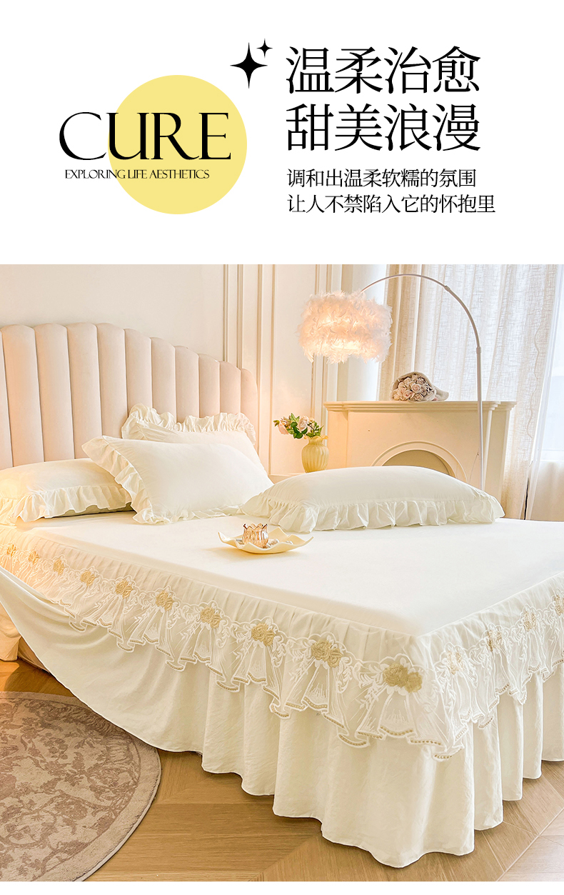 当前位置: 91家纺网 > 商品网购 > 床品套件 > 三件套 > (总)好儿喜家纺 2025新款A类水洗棉花边床裙蕾丝床罩三件套-如漫