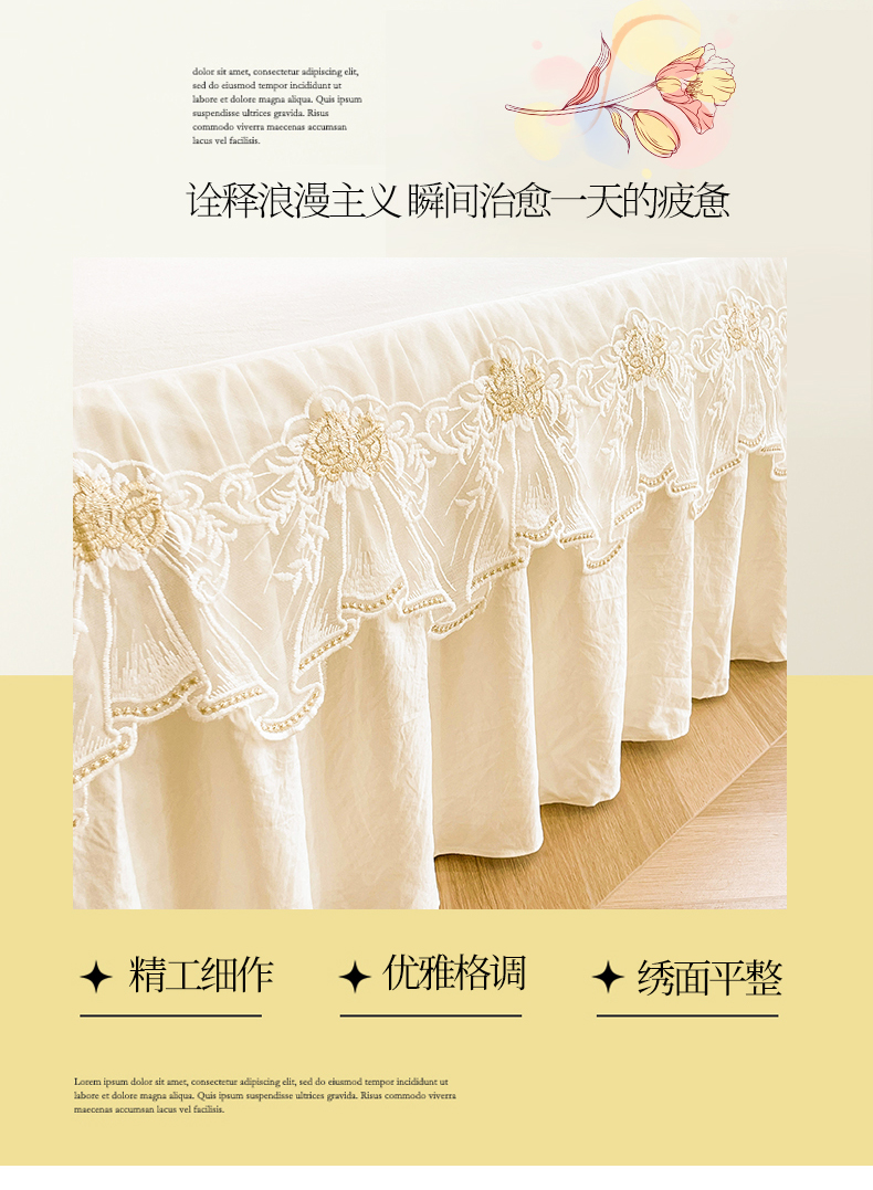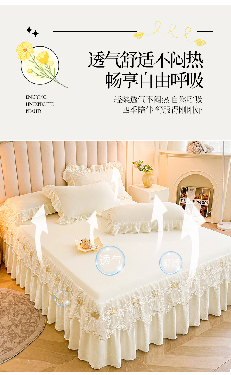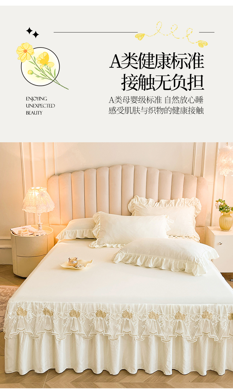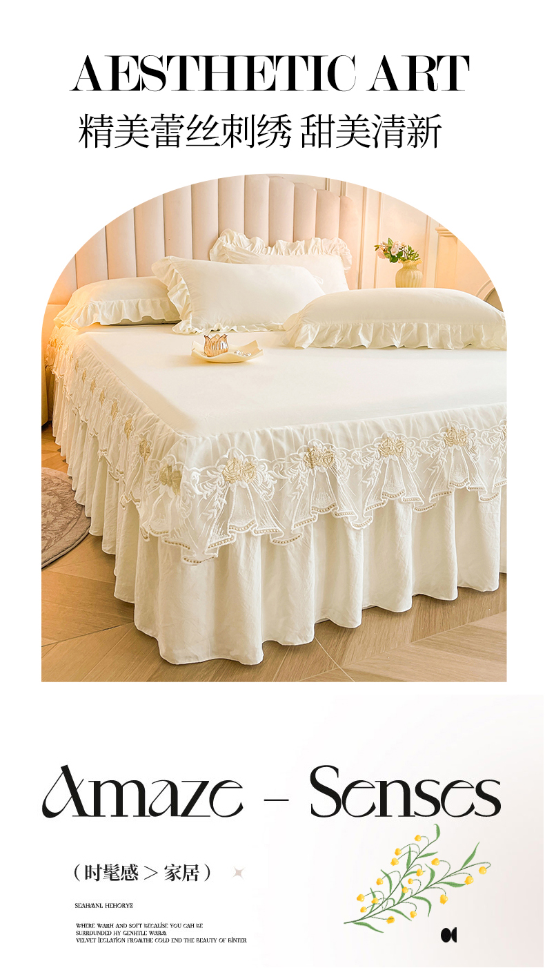 当前位置: 91家纺网 > 商品网购 > 床品套件 > 三件套 > (总)好儿喜家纺 2025新款A类水洗棉花边床裙蕾丝床罩三件套-如漫
