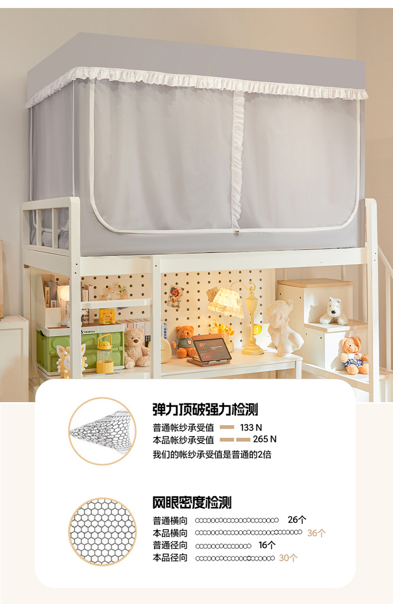 当前位置: 91家纺网 > 商品网购 > 床上用品 > 蚊帐 > 学生蚊帐 > 安金蚊帐 2025新款防蚊遮光一体99%强遮光宿舍上下铺遮光学生蚊帐纯色花边 浅灰