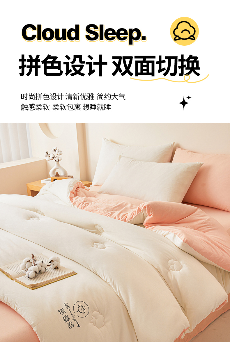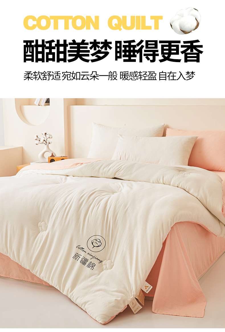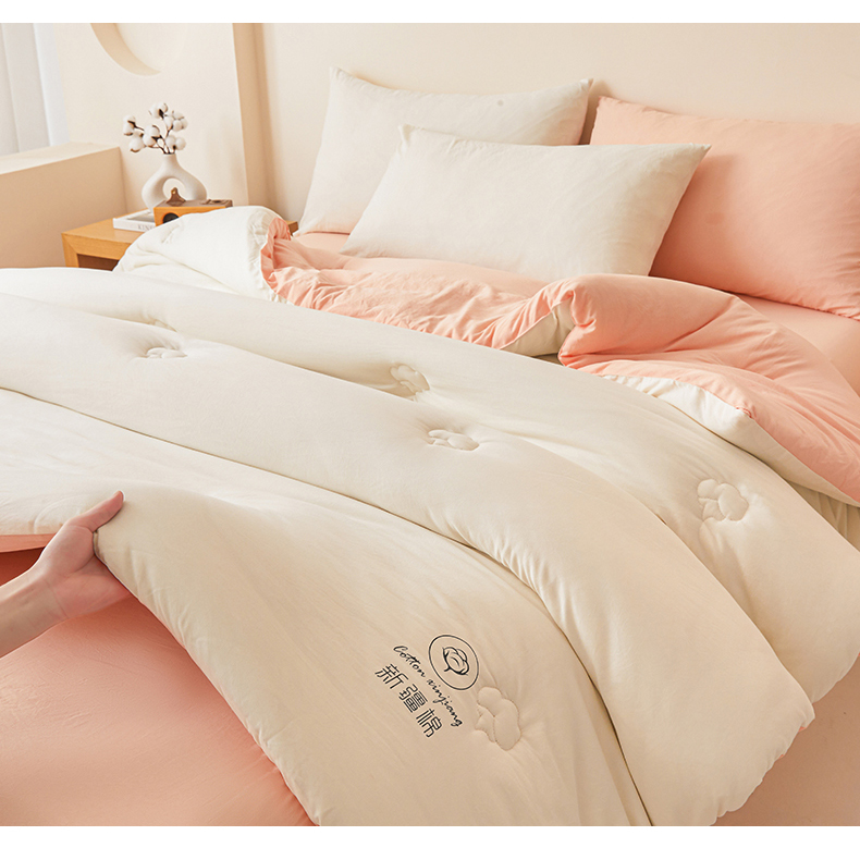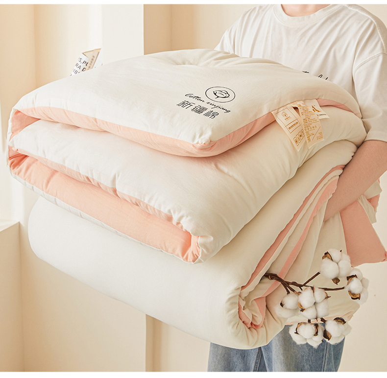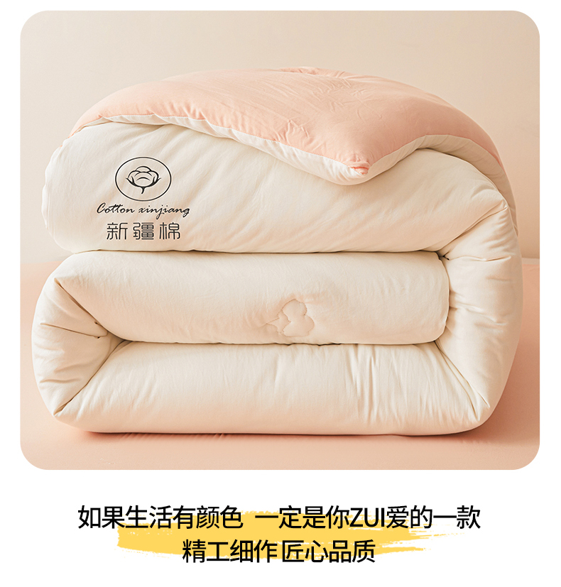 • 91家纺网 家纺一手货源 找家纺 晓时候 2025新款纯色无印风新疆棉花被冬被春秋被夏被四季被子被芯-常年有货(含买家秀) 白粉