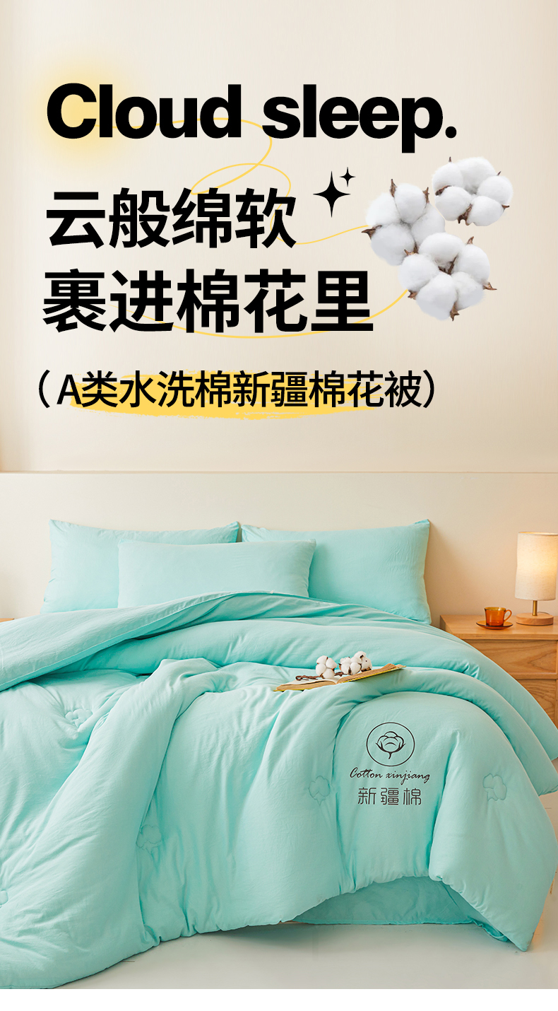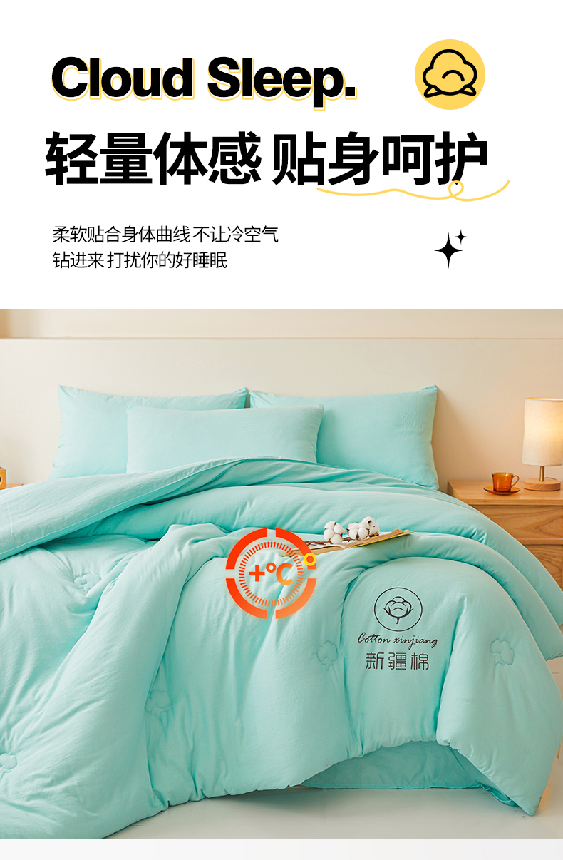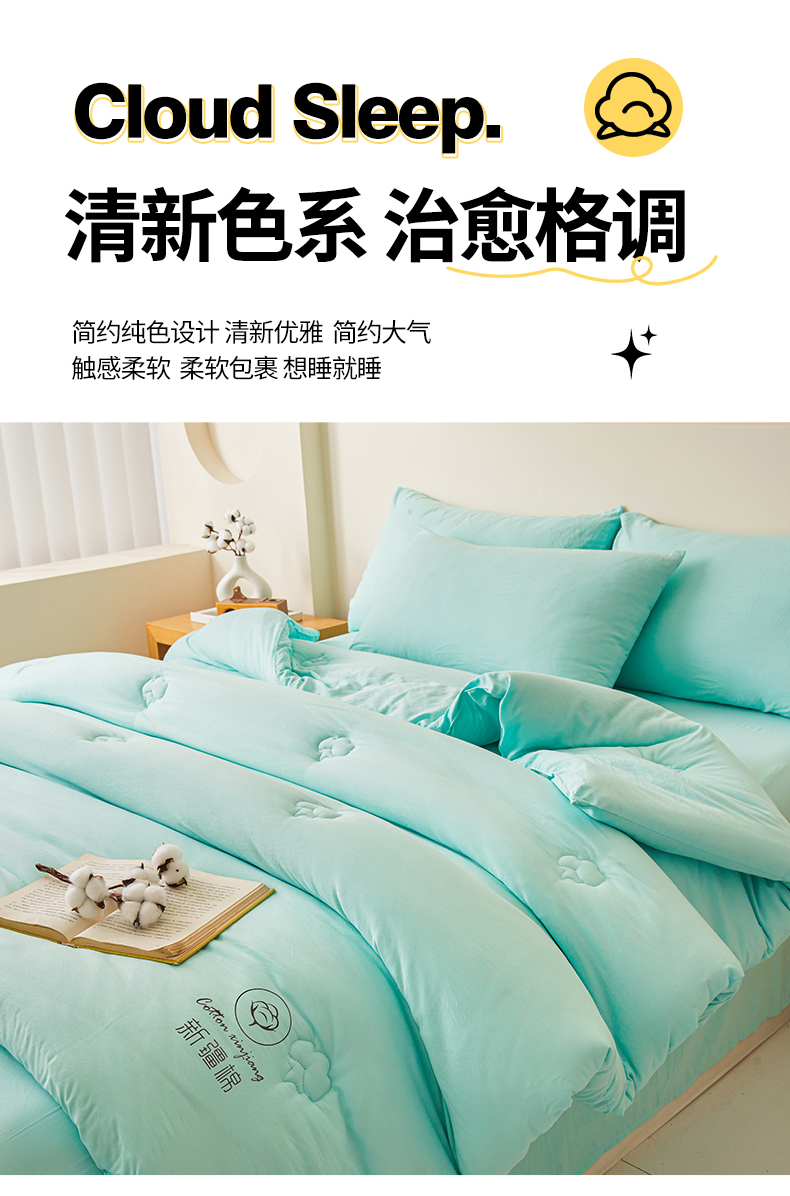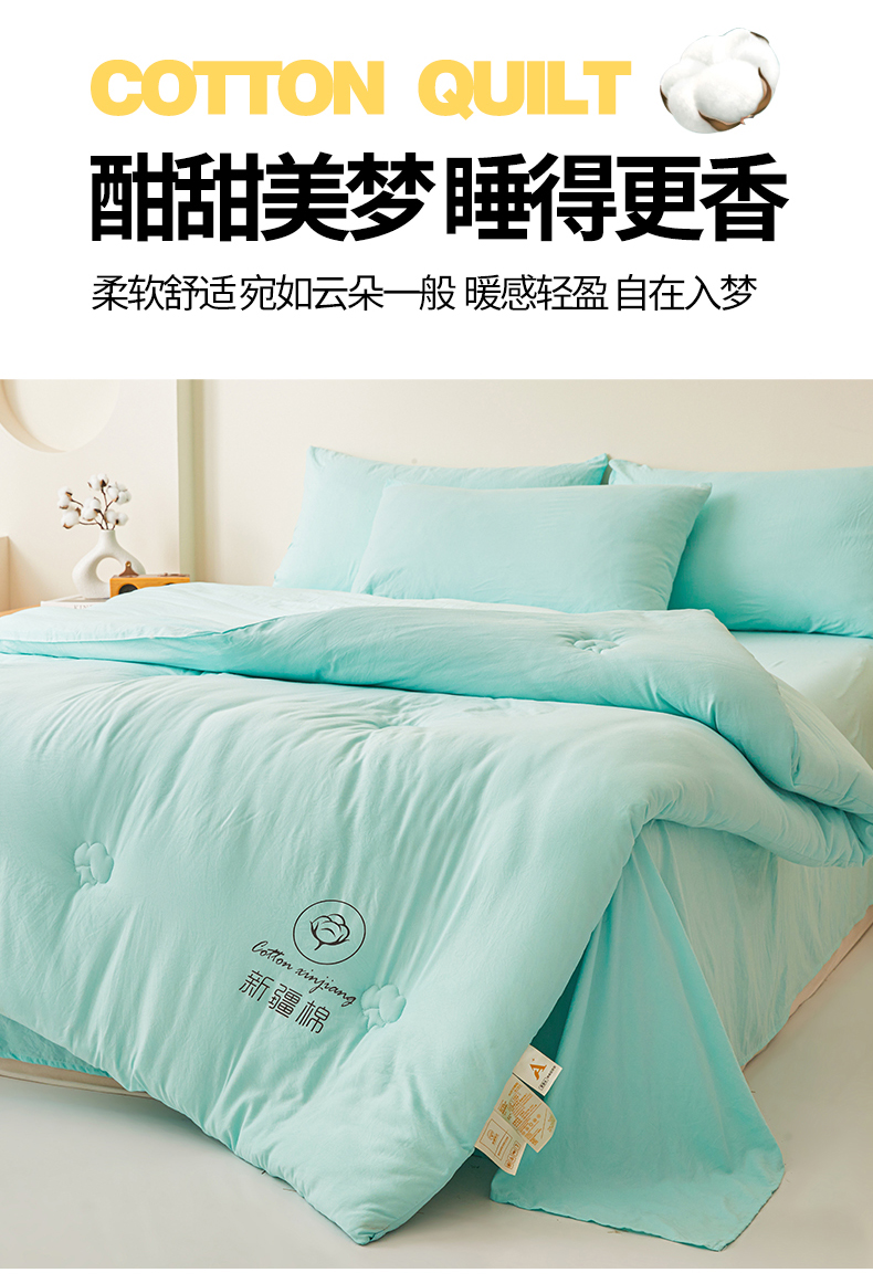 • 91家纺网 家纺一手货源 找家纺 晓时候 2025新款纯色无印风新疆棉花被冬被春秋被夏被四季被子被芯-常年有货(含买家秀) 水蓝