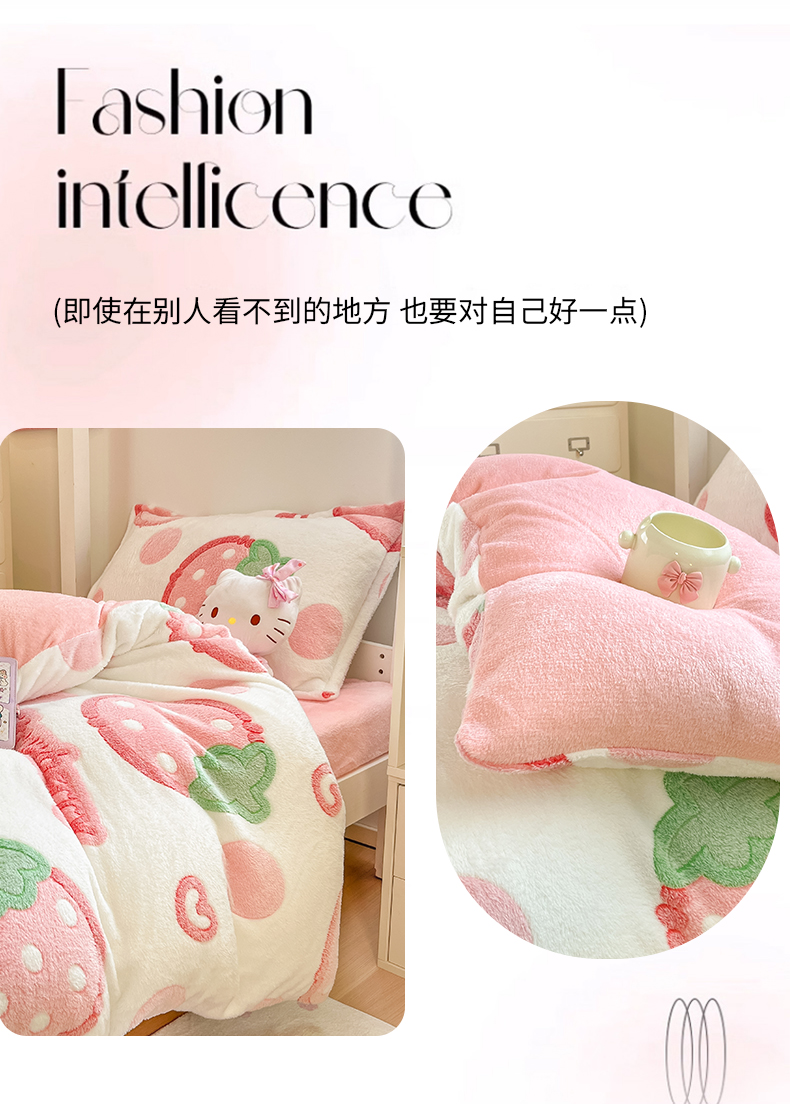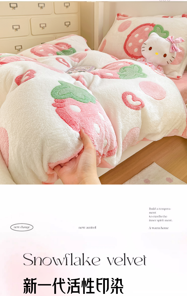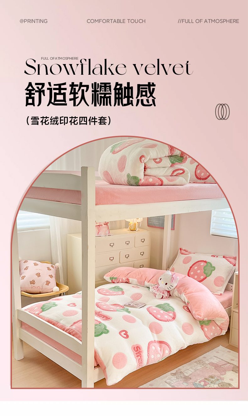 当前位置: 91家纺网 > 商品网购 > 床品套件 > 四件套 > 其它四件套 > 川悦生活 2025新款立体雪花绒印花四件套学生床系列一场景一 啵啵草莓