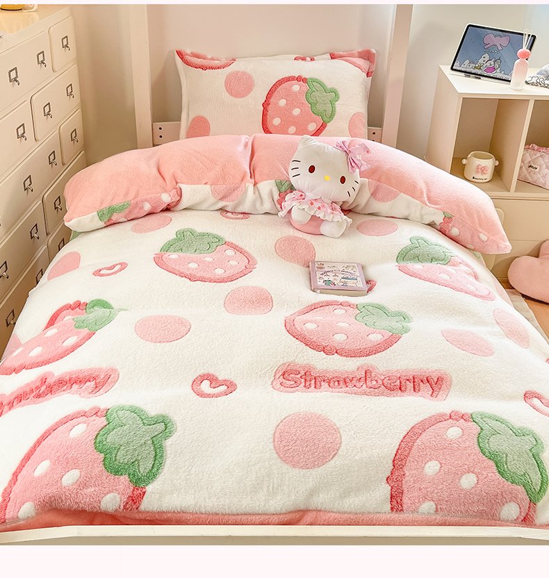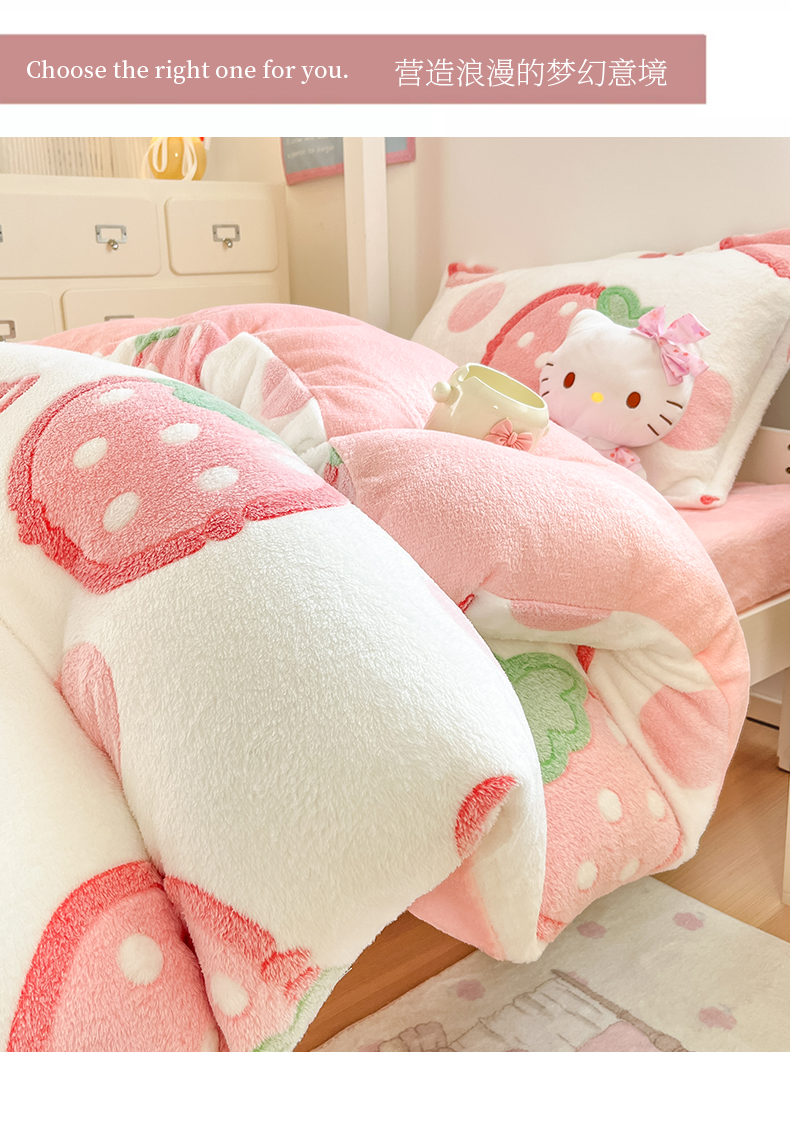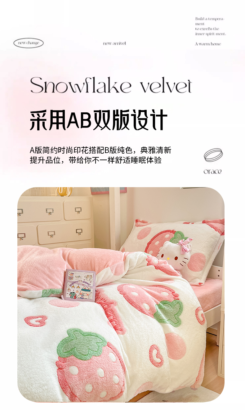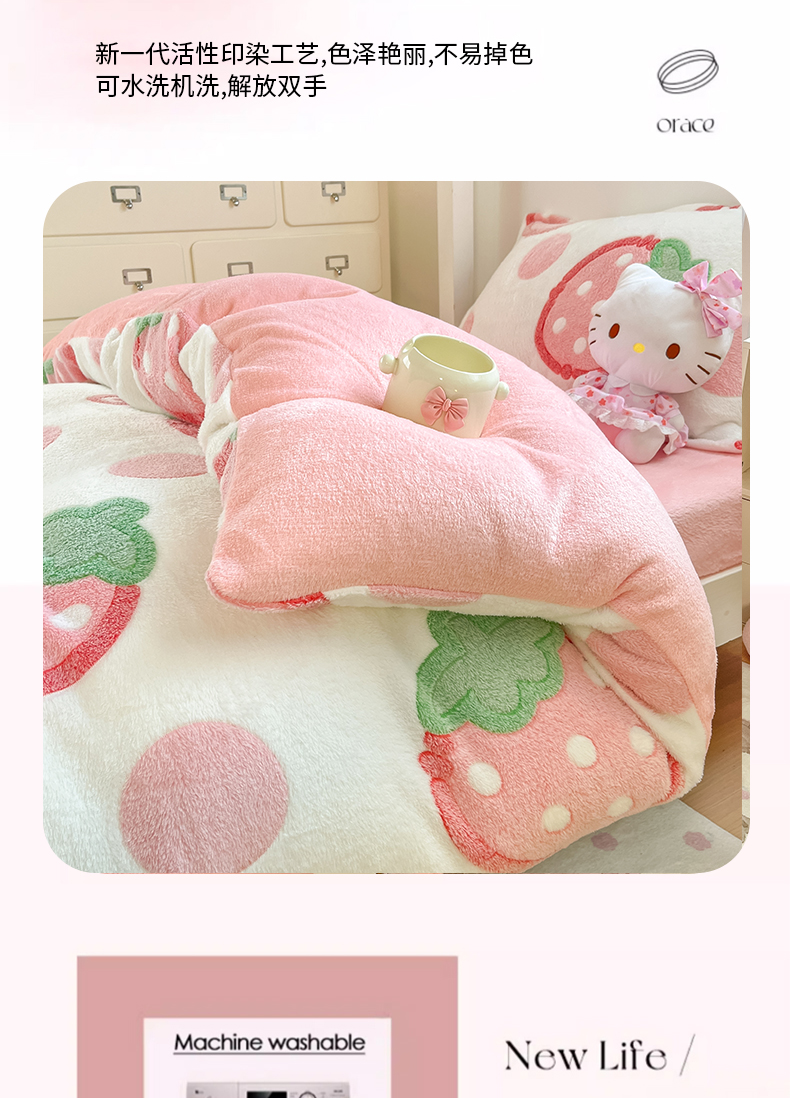 当前位置: 91家纺网 > 商品网购 > 床品套件 > 四件套 > 其它四件套 > 川悦生活 2025新款立体雪花绒印花四件套学生床系列一场景一 啵啵草莓
