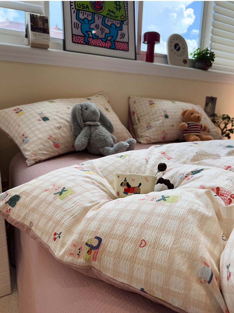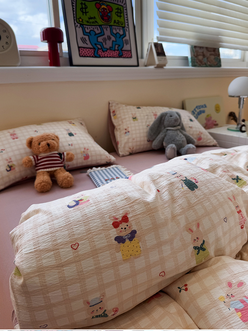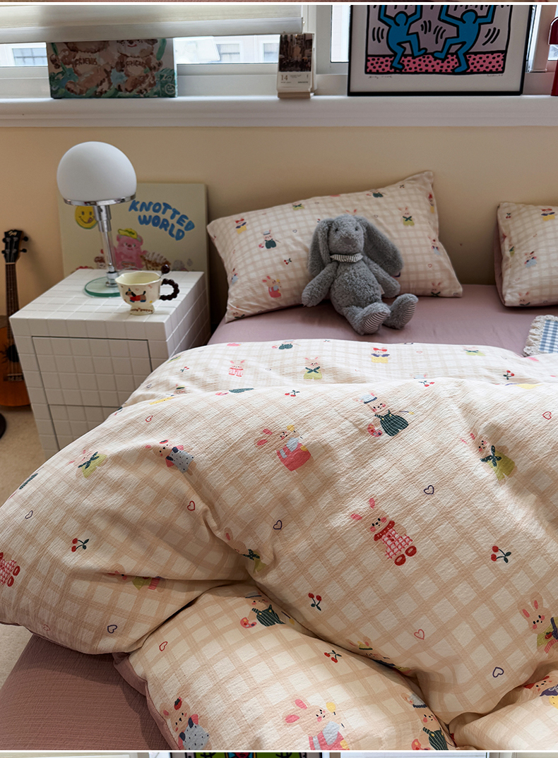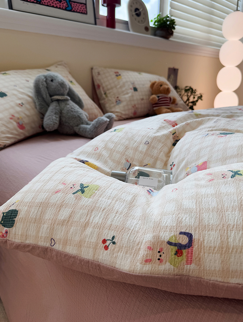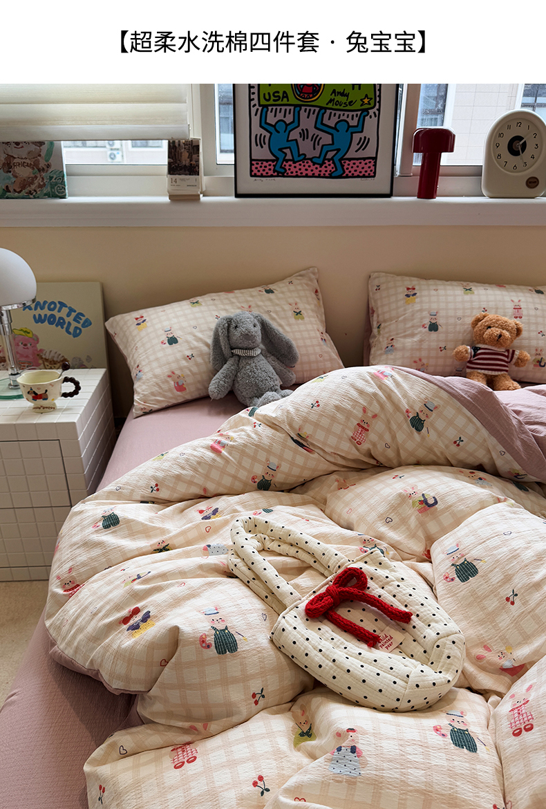 当前位置: 91家纺网 > 商品网购 > 床品套件 > 四件套 > 其它四件套 > 水墨江南 2025新款高克重云感双层纱印花四件套-场景二 兔宝宝