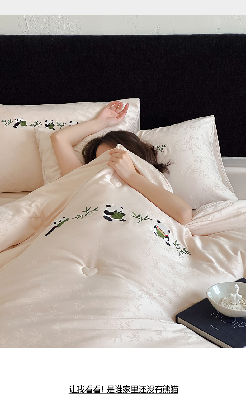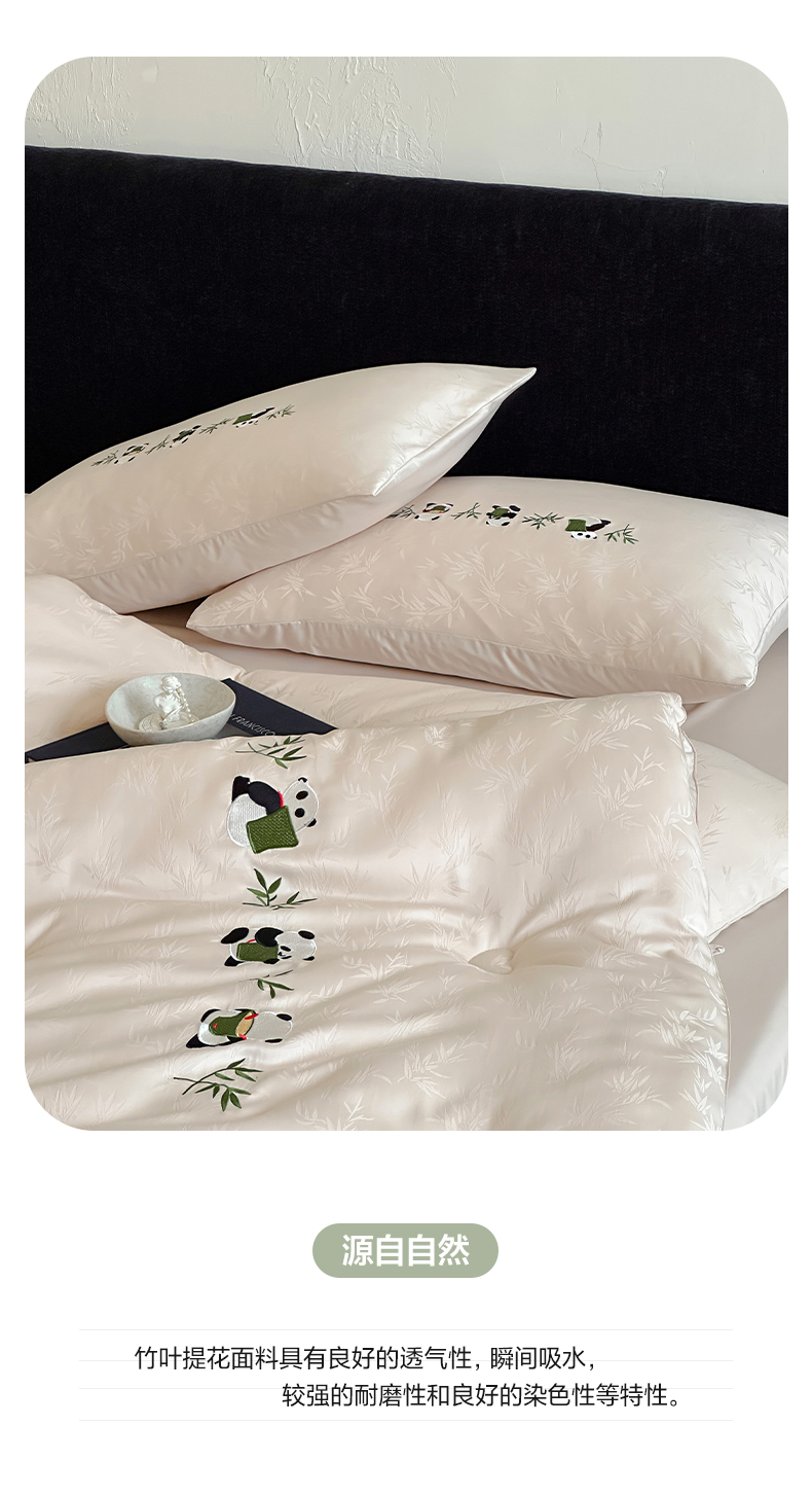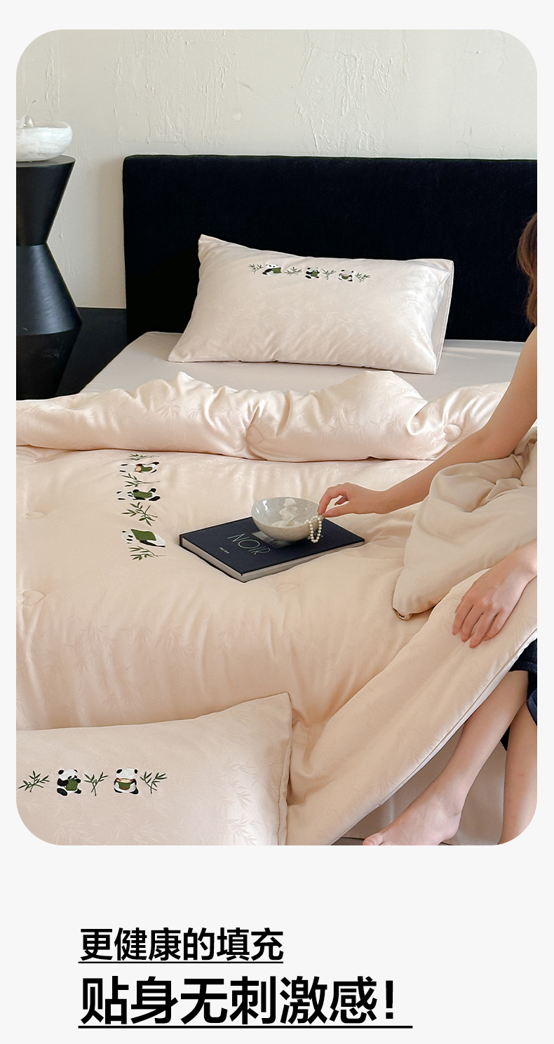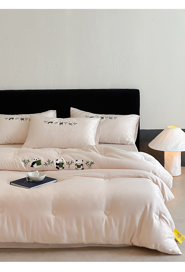 商品名称:一加一 2025新款竹叶提花刺绣抗菌被芯被子冬被-熊猫戏竹 熊猫戏竹-浅粉