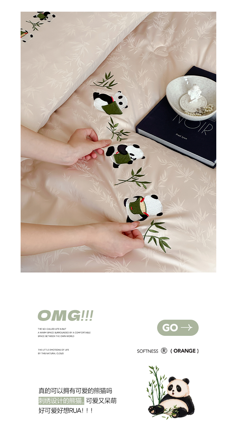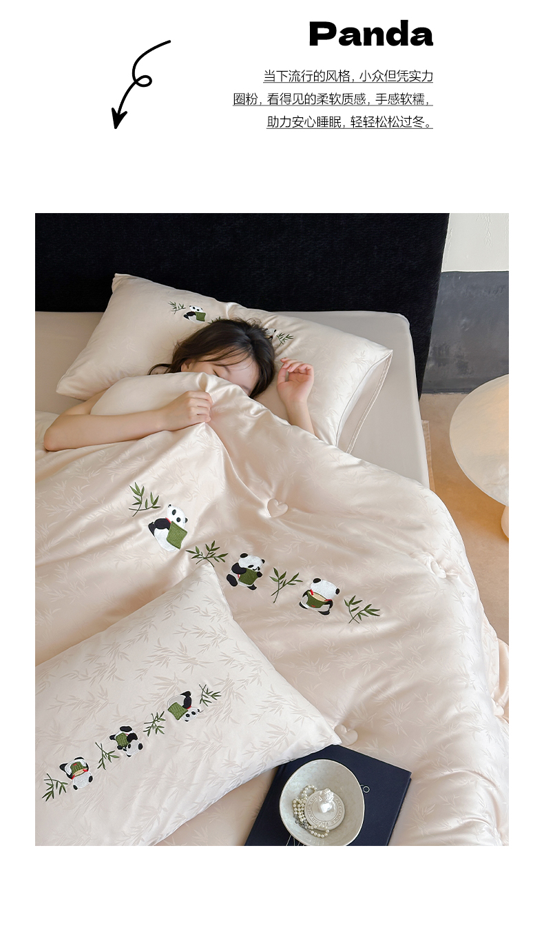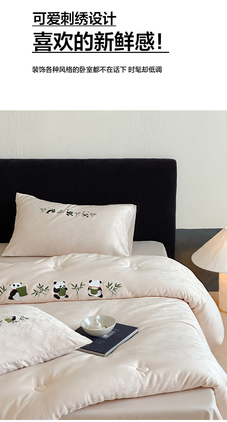 商品名称:一加一 2025新款竹叶提花刺绣抗菌被芯被子冬被-熊猫戏竹 熊猫戏竹-浅粉