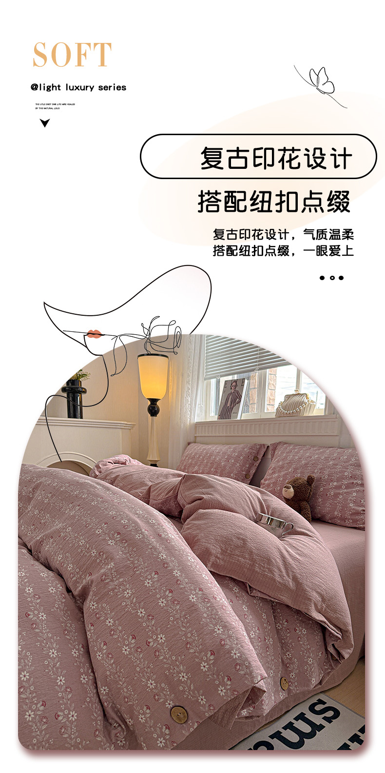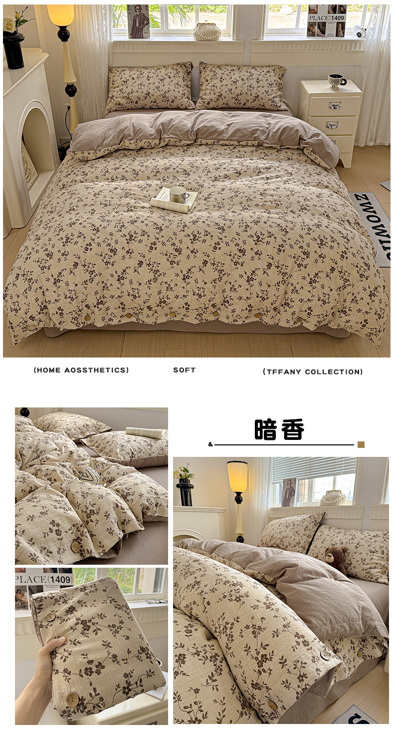 当前位置: 91家纺网 > 商品网购 > 床品套件 > 四件套 > 其它四件套 > 水墨江南 2025新款原麻复古印花纽扣款四件套 一抹香-豆沙