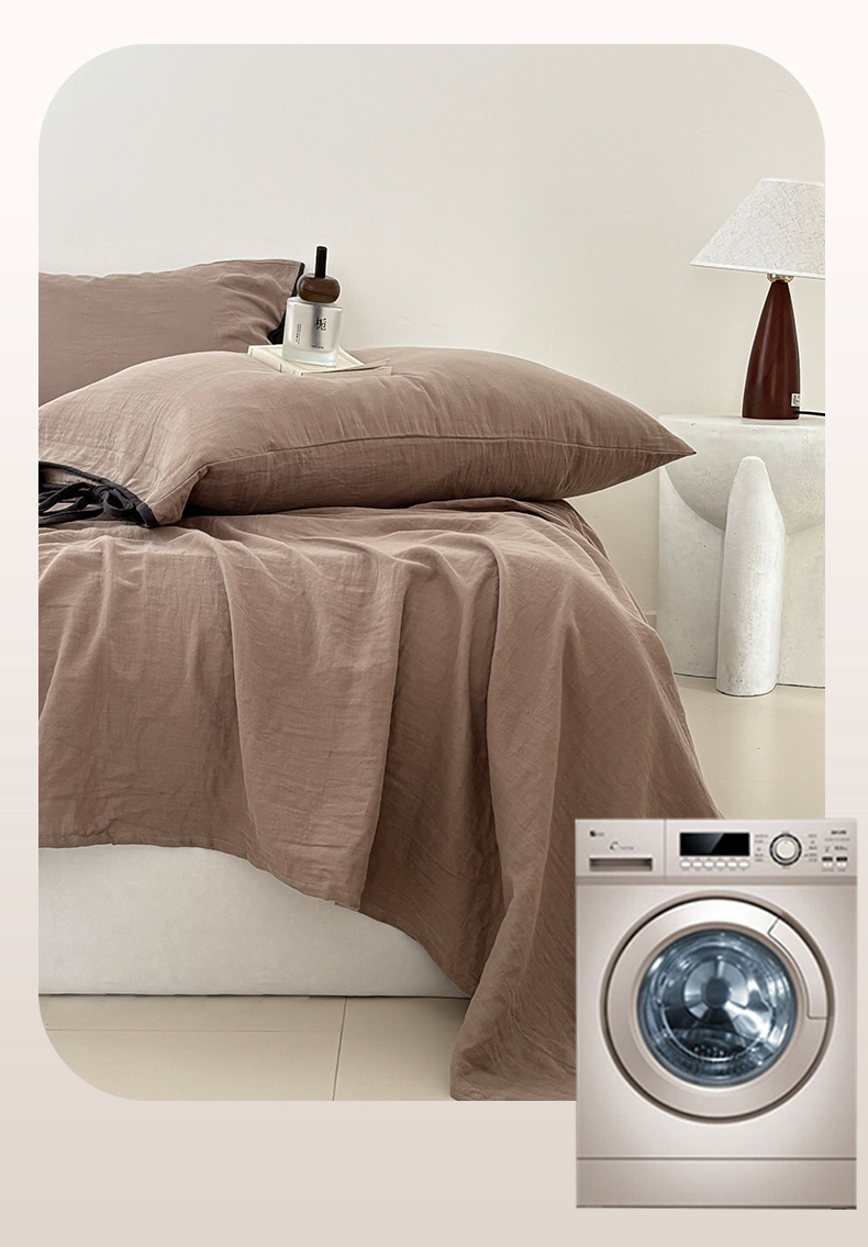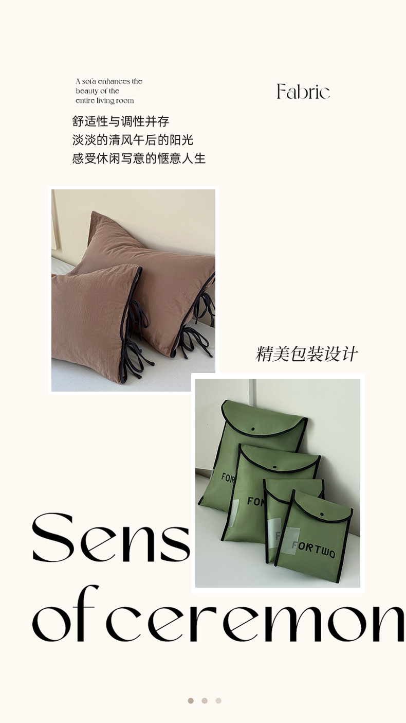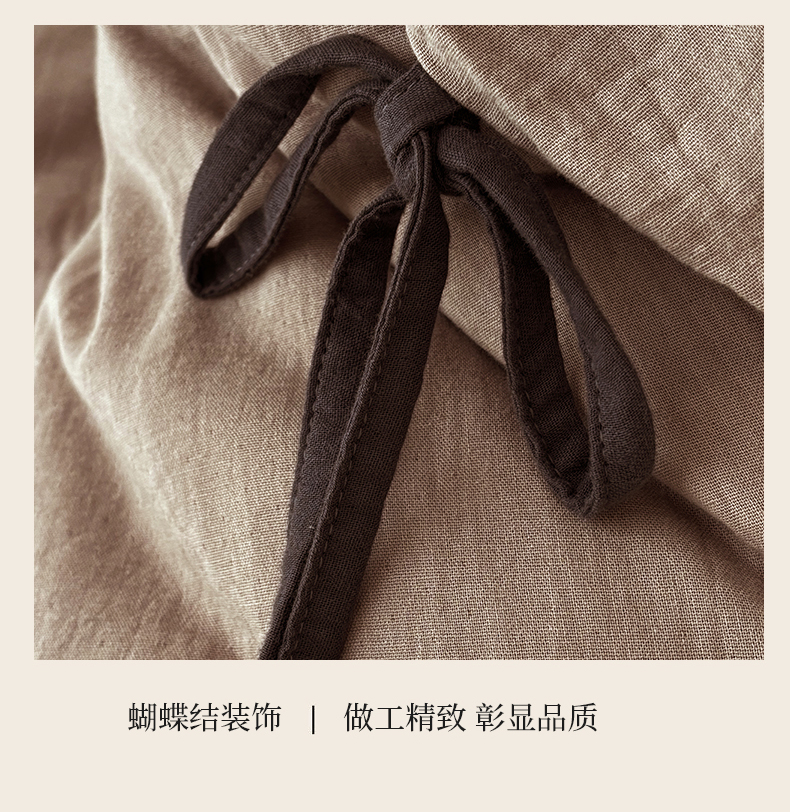 商品名称:FORTWO家纺原创设计(FOR TWO家纺) 2025新款40支双层纱撞色包边蝴蝶结款单被套-海盐 海盐-黑巧