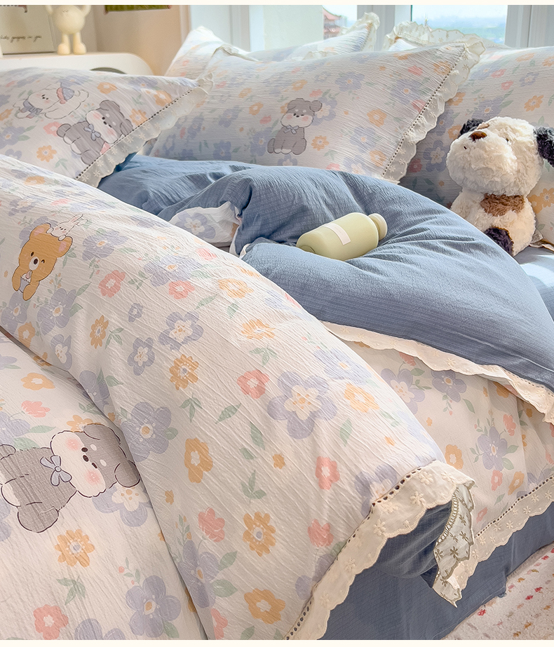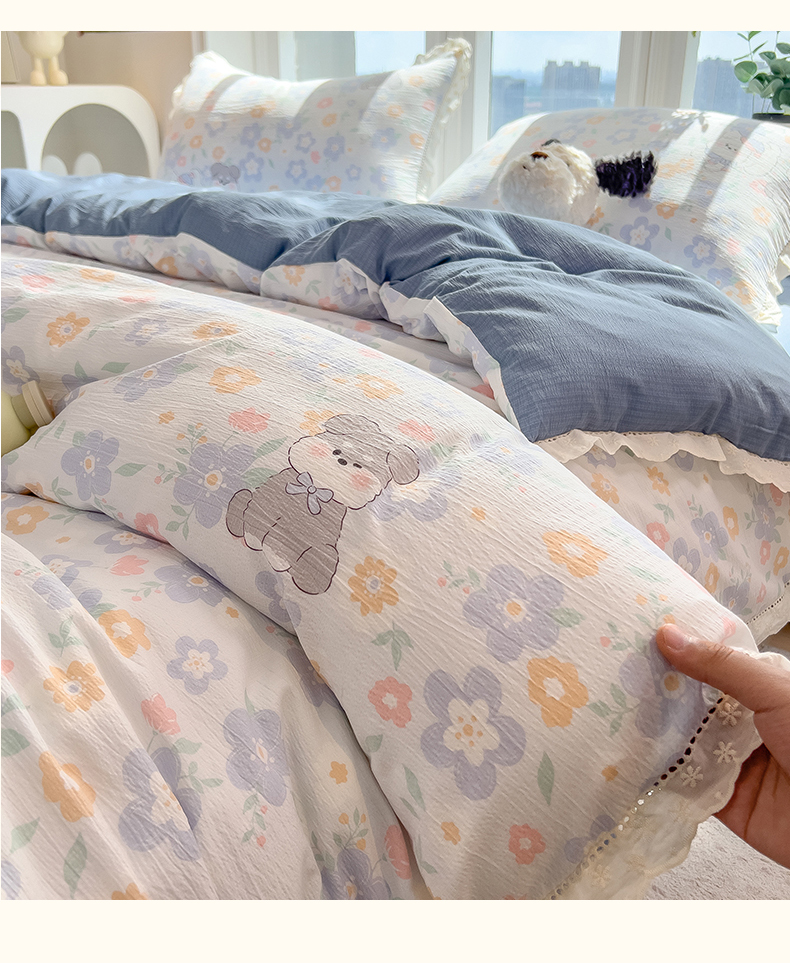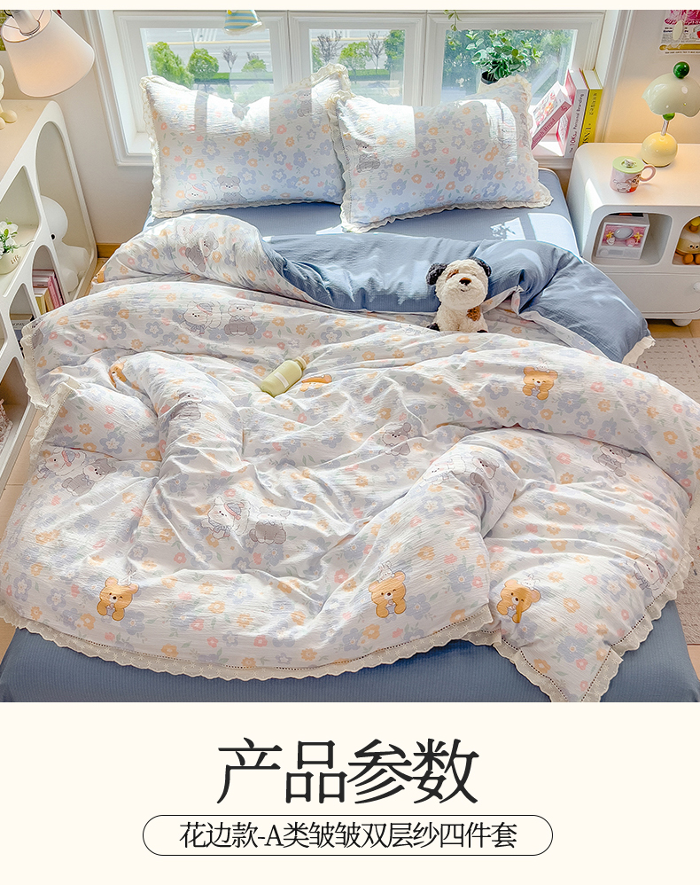 当前位置: 91家纺网 > 商品网购 > 床品套件 > 四件套 > 双层纱四件套 > 雯豆家纺2025新品皱皱双层纱四件套镂空花边款三件套 奶萌小狗
