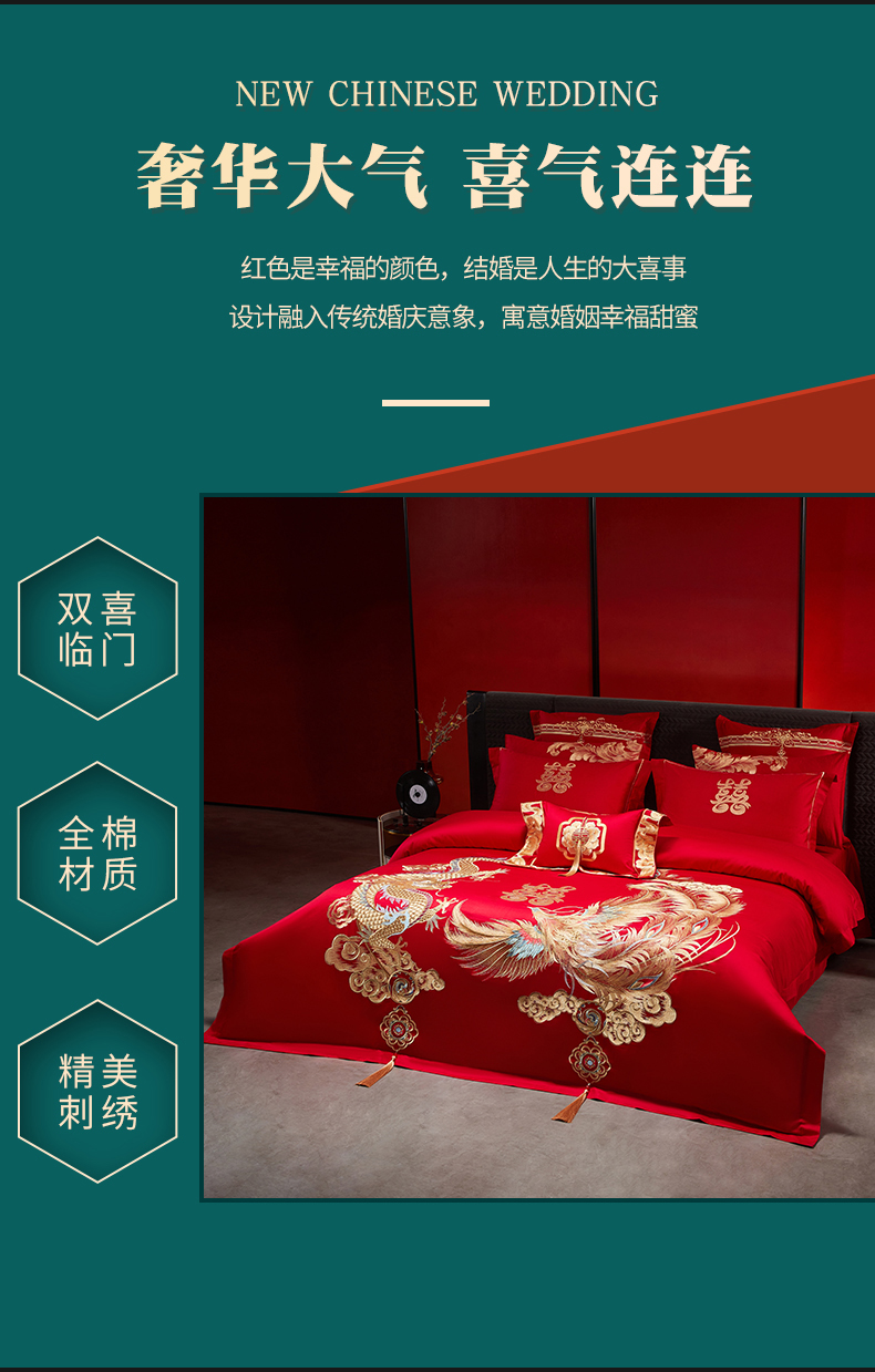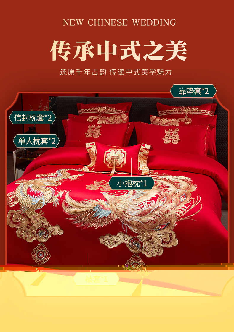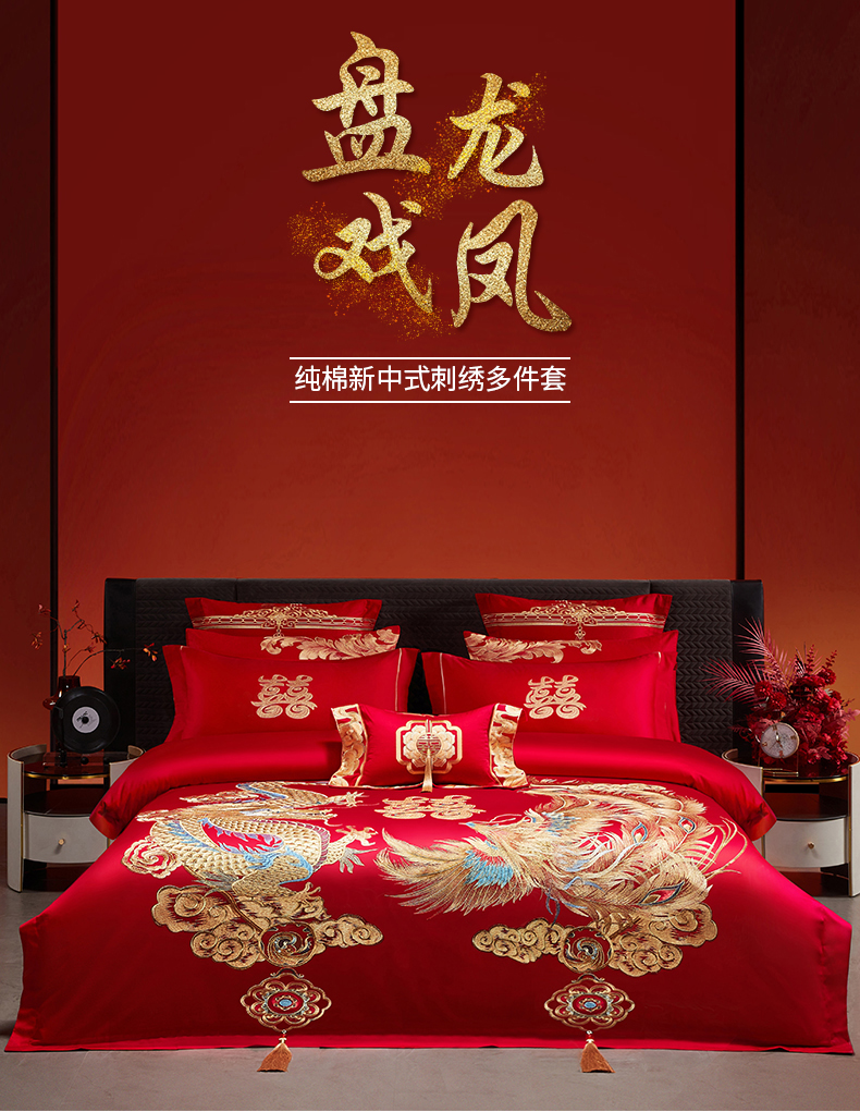 当前位置: 91家纺网 > 商品网购 > 床品套件 > 四件套 > 婚庆四件套 > 宏羽纺家纺 2025新款全棉100%全棉新中式婚庆多件套 全棉盘龙戏凤