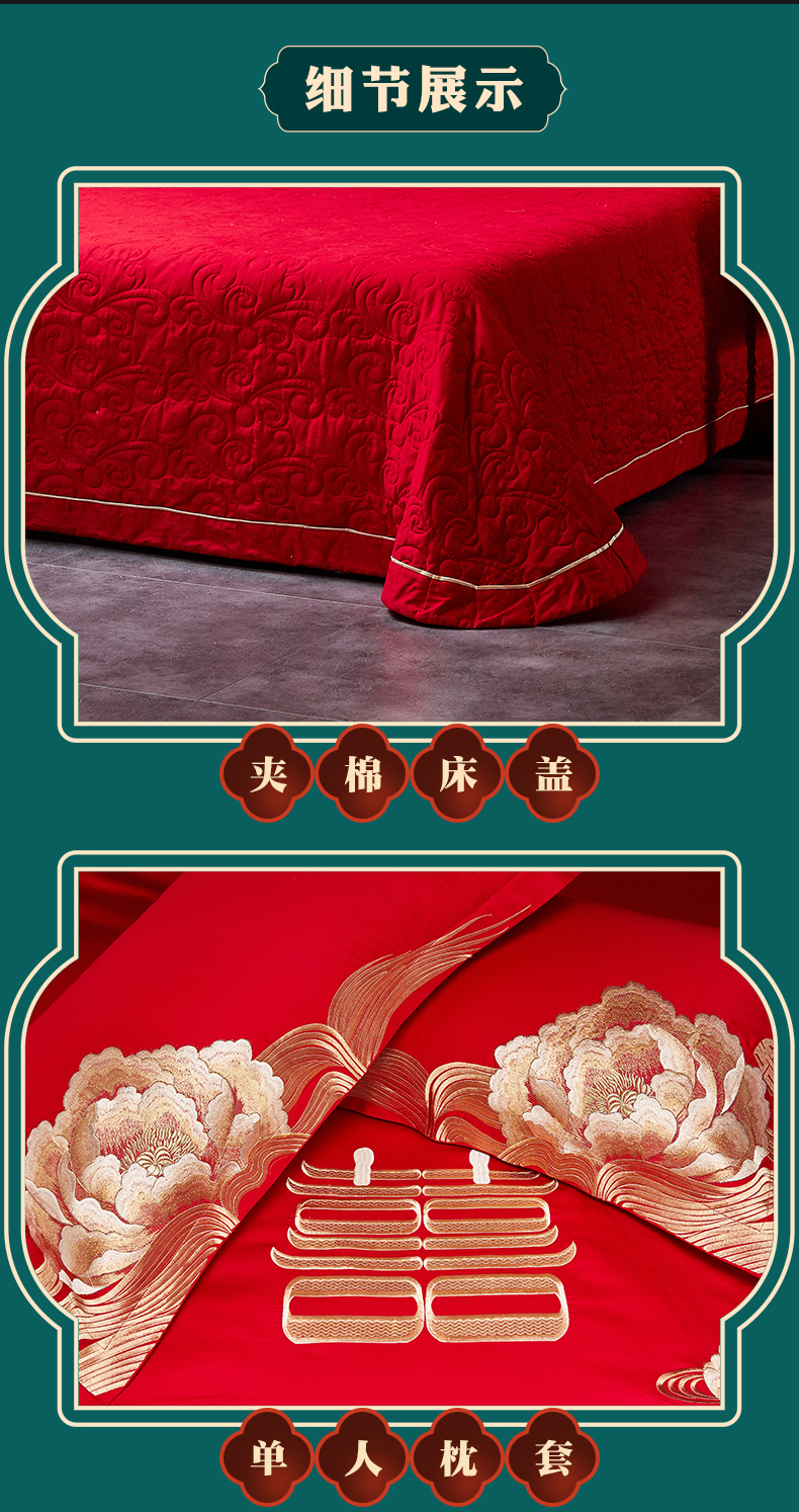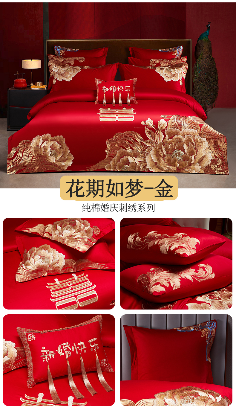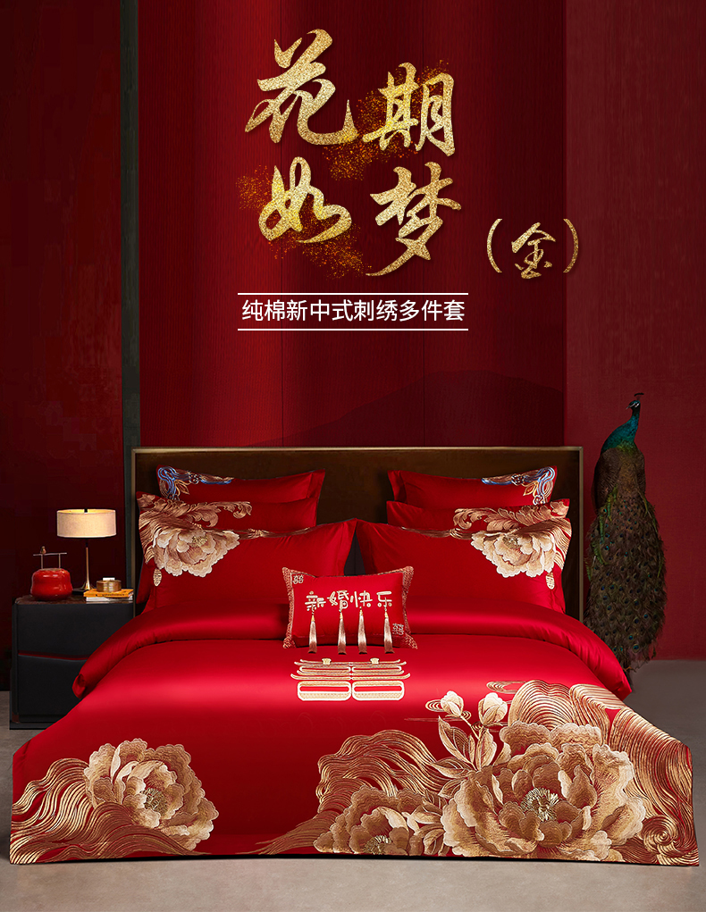 当前位置: 91家纺网 > 商品网购 > 床品套件 > 四件套 > 婚庆四件套 > 宏羽纺家纺 2025新款全棉100%全棉新中式婚庆多件套 全棉一花期如梦-金