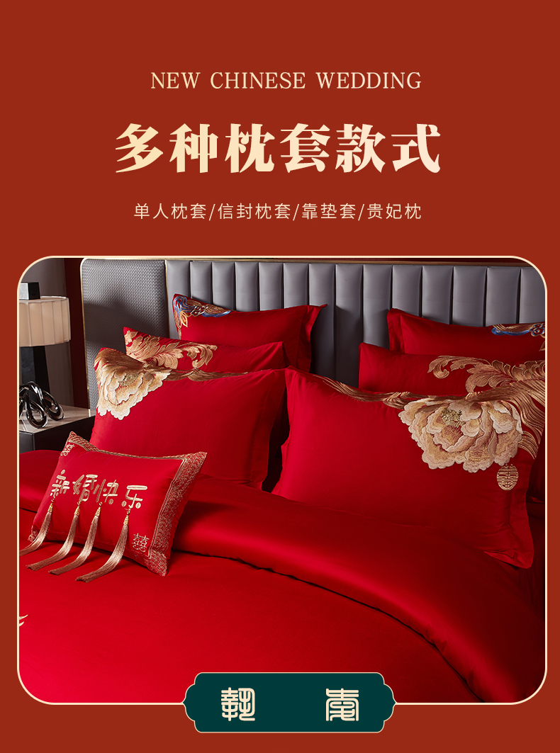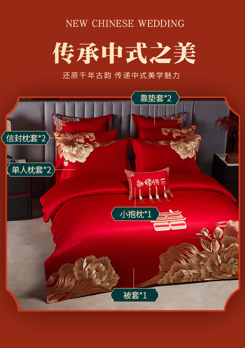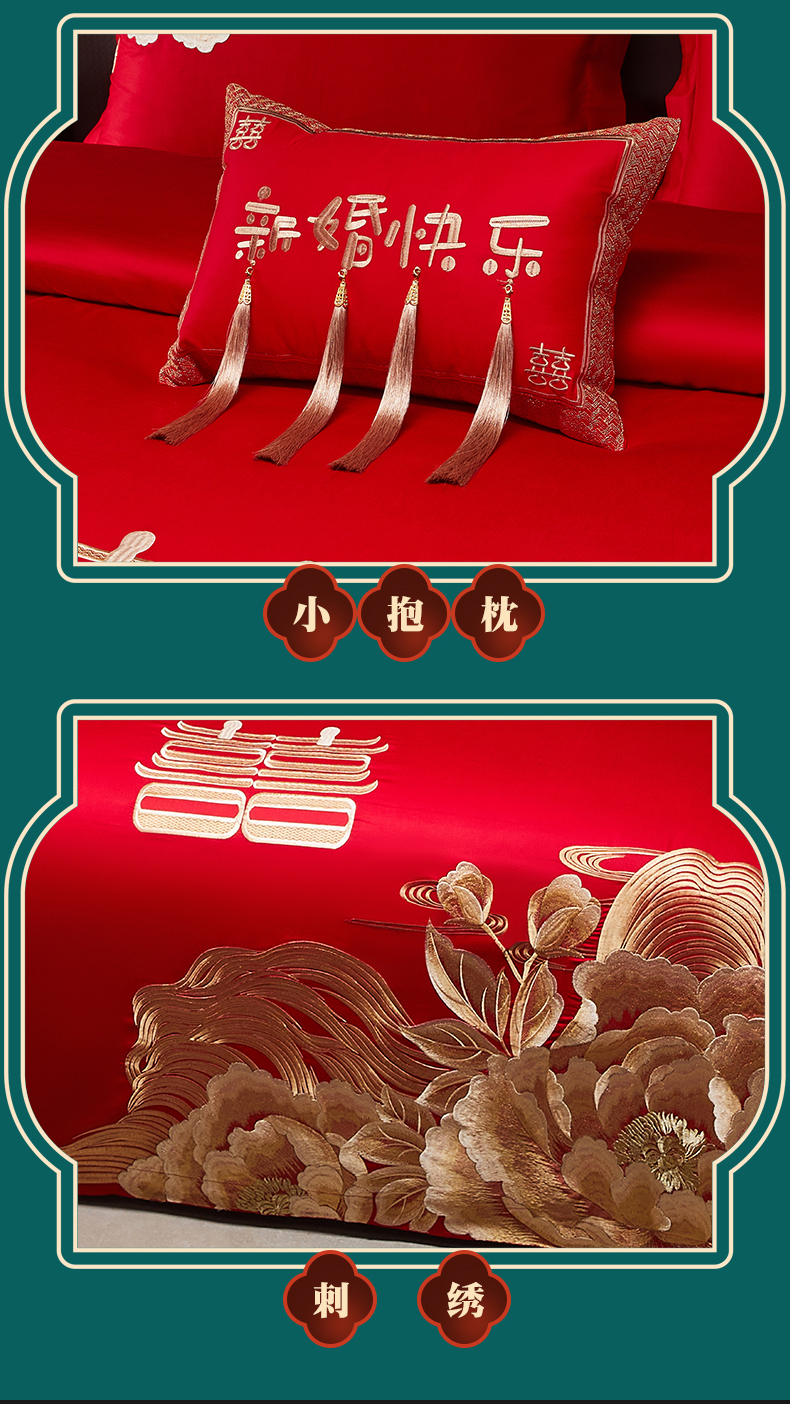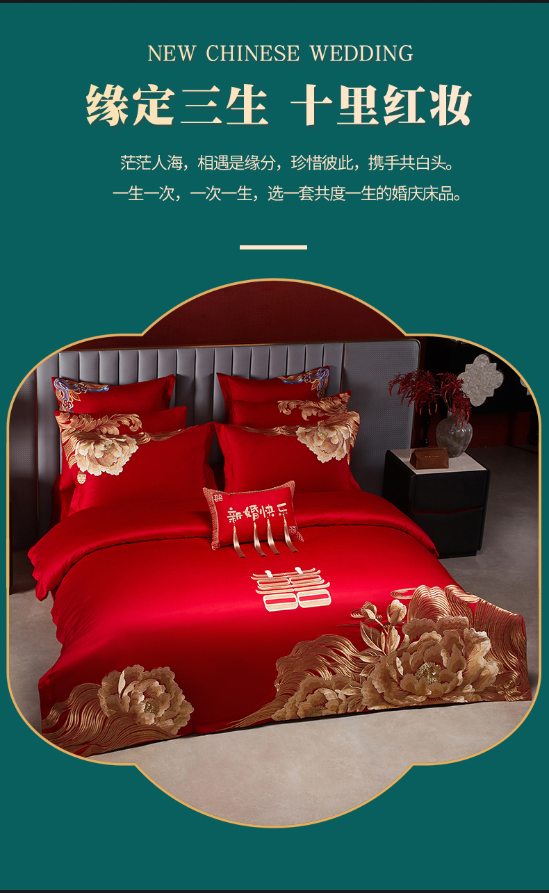 当前位置: 91家纺网 > 商品网购 > 床品套件 > 四件套 > 婚庆四件套 > 宏羽纺家纺 2025新款全棉100%全棉新中式婚庆多件套 全棉一花期如梦-金