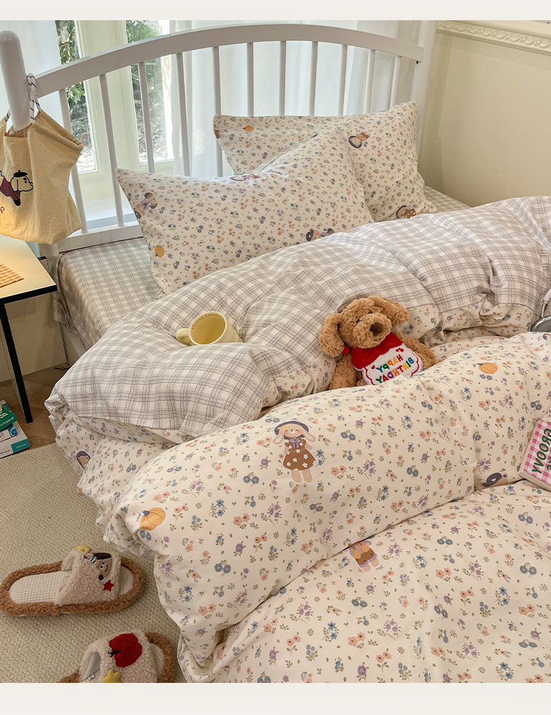 盛馨家纺 2025年开学季秋冬新品小清新全棉学生三件套四件套床笠四件套跑量款系列 南瓜小熊