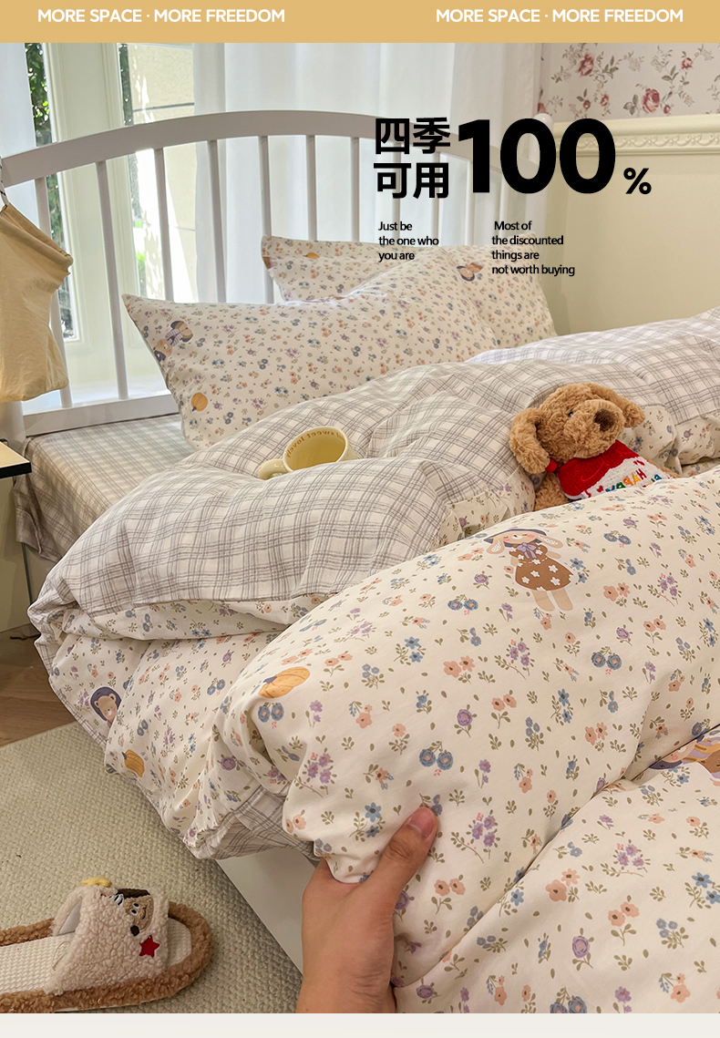 总盛馨家纺 2023新款ins北欧风高支高密全棉喷气小清新纯棉四件套,花丛兔,锦鲤,快乐小狗,梦幻,梦境小兔,入夏,若微,溪沐,叶墨新晨,樱桃兔,星球家园,草莓兔,花粉兔,花花小熊,花开富贵,花蓝兔,花胥梦粉,花韵,狂想曲蓝,萌宠乐园,蜜桃公主,莫奈花园蓝,奇妙幻想蓝,曲奇小熊,圣歌娜,诗情画意,桃桃兔,甜蜜小花,文特森 咖,小黄鸭,叶叶小花,油画草莓,丛林家园,粉色花海,可可大草莓,浪漫花朵,满庭花开,漫时光,暖阳紫,郁金香小兔