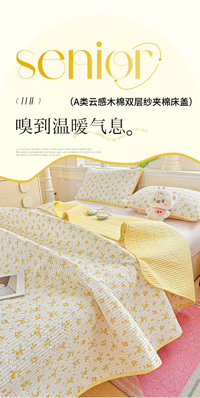• 91家纺网 家纺一手货源 找家纺 恒尚居 2025新款双层纱床盖床盖单品单床盖云感夹棉床单床垫软床垫-四季款【系列一】 【春日繁花】双层纱