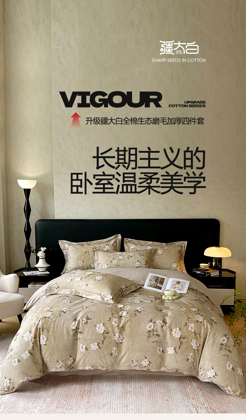 商品名称:麦田家纺 2025新款疆大白全棉纯棉加厚生态磨毛四件套 柔晨