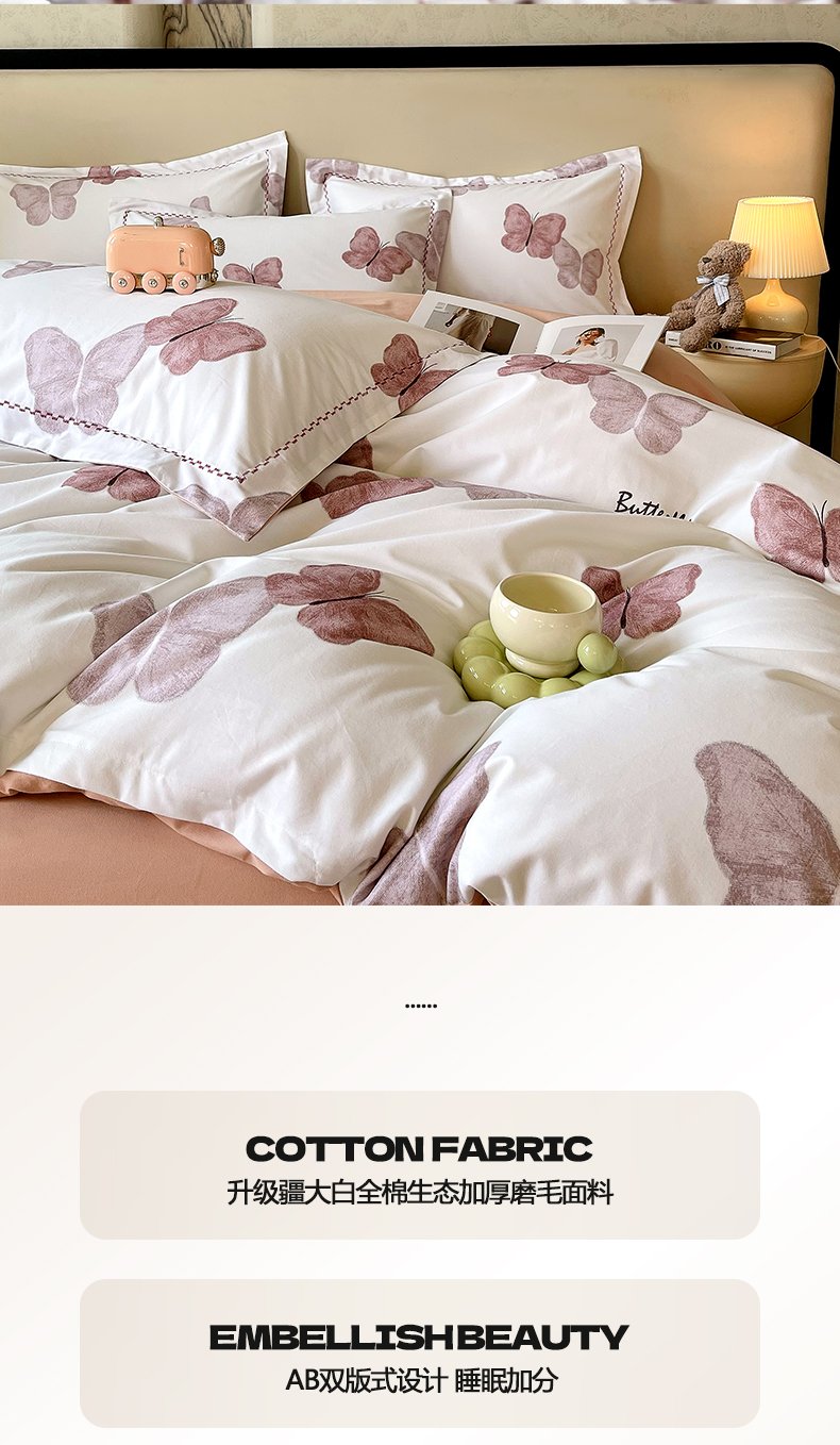 商品名称:麦田家纺 2025新款疆大白全棉纯棉加厚生态磨毛四件套 伊伴-豆沙