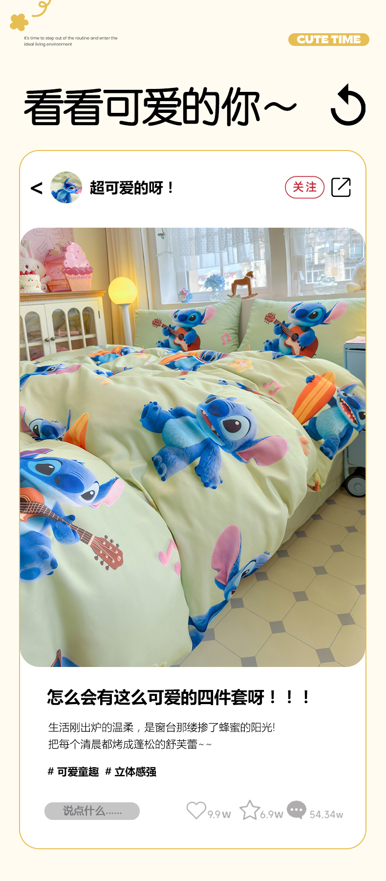 当前位置: 91家纺网 > 商品网购 > 床品套件 > 四件套 > 其它四件套 > 优卡迪家纺馆 2025新款110克5D数码印花四件套 休闲史迪奇-绿