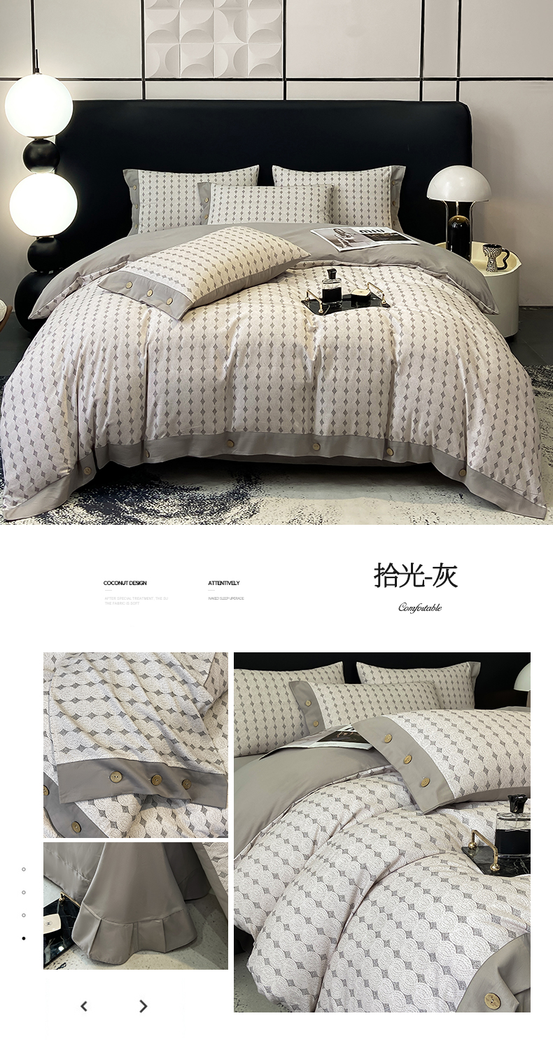 商品名称:麦田家纺 2025新款全棉纯棉轻奢加厚磨毛纽扣款四件套 几何