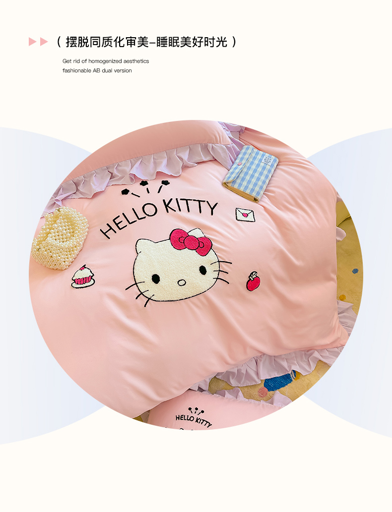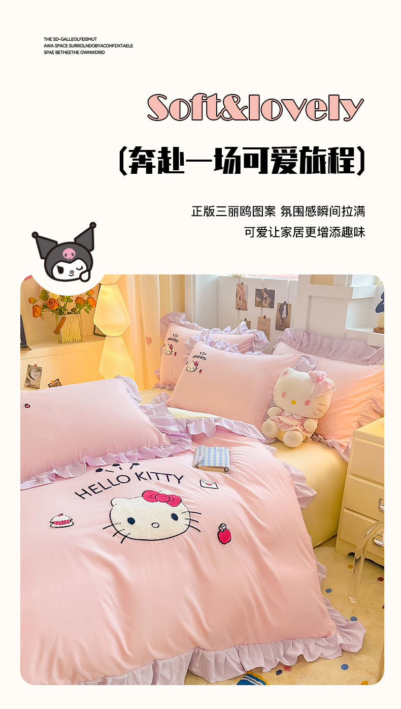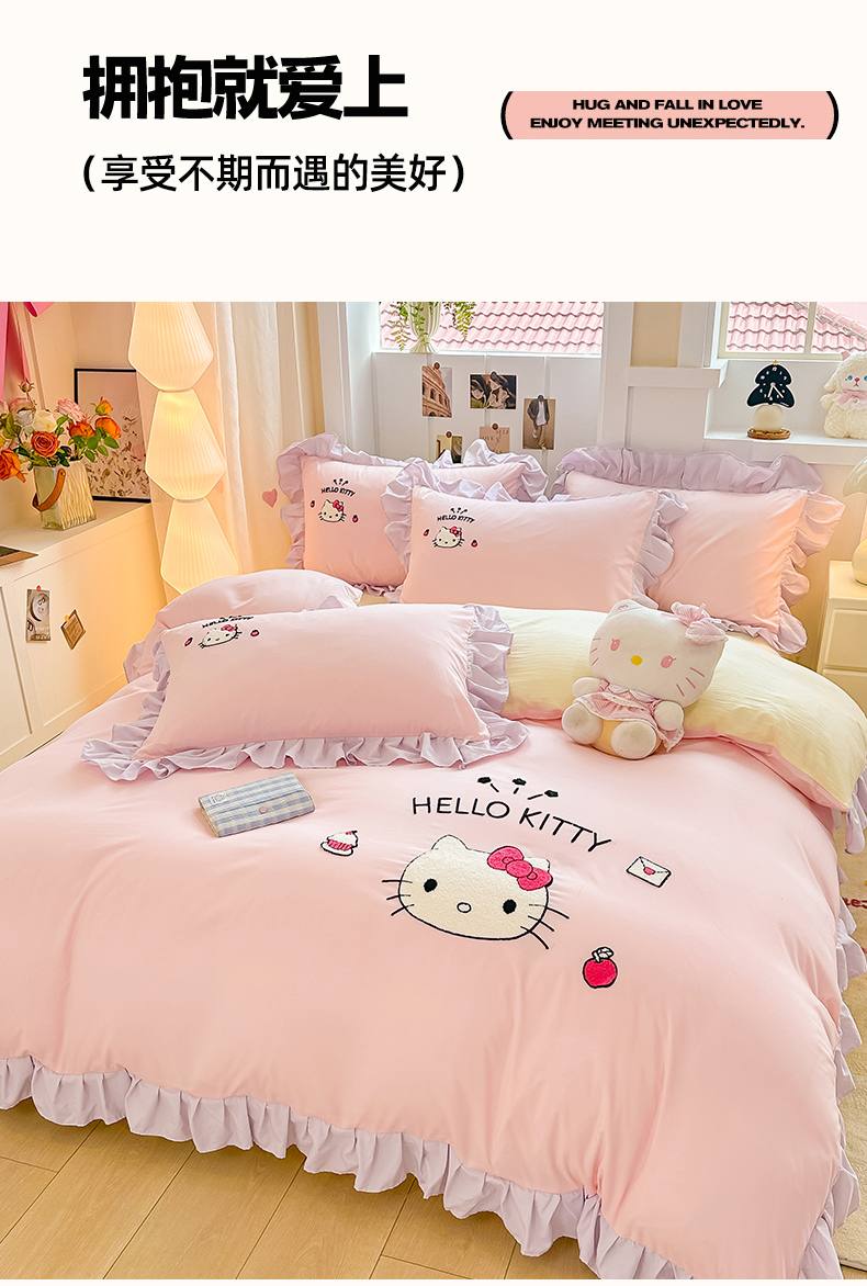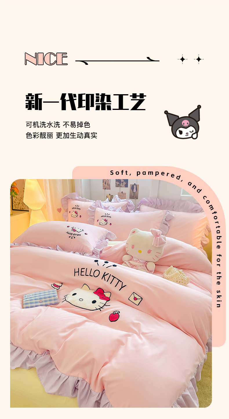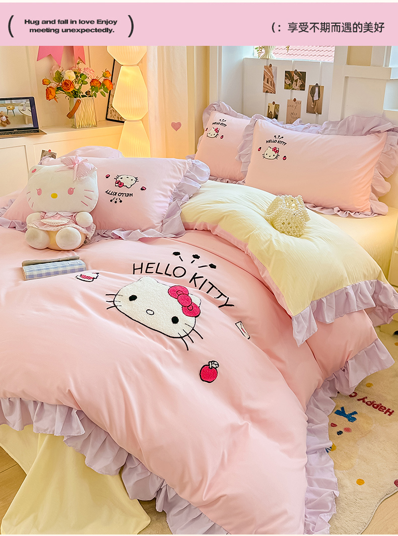 当前位置: 91家纺网 > 商品网购 > 床品套件 > 四件套 > 水洗棉四件套 > 博雅 2025春夏新款毛巾绣三丽鸥水洗棉花边四件套正版授权 毛巾绣-甜美KT猫