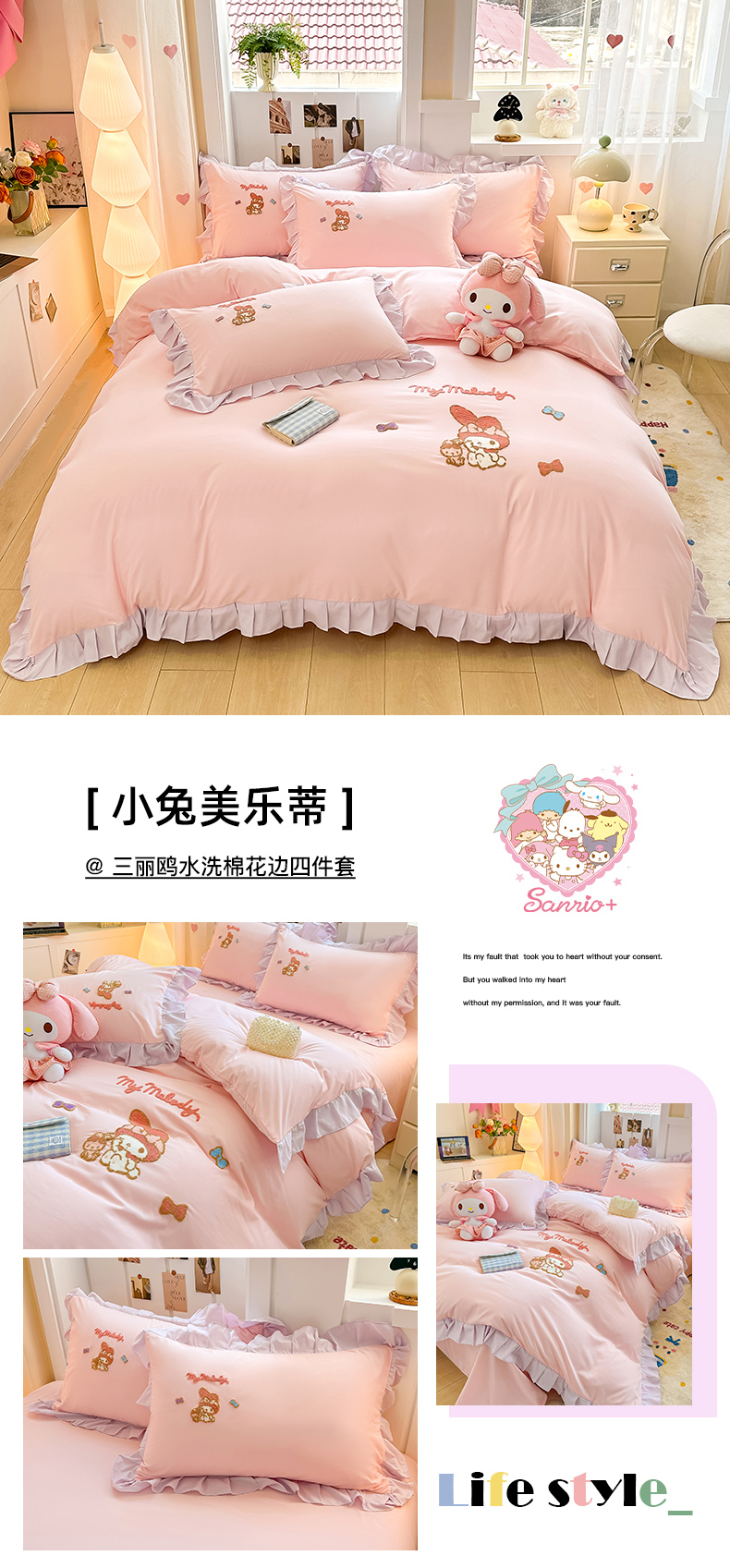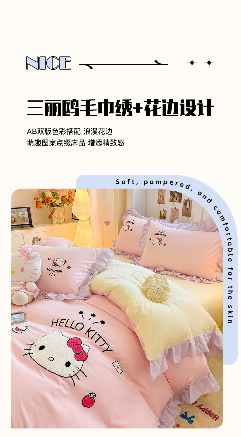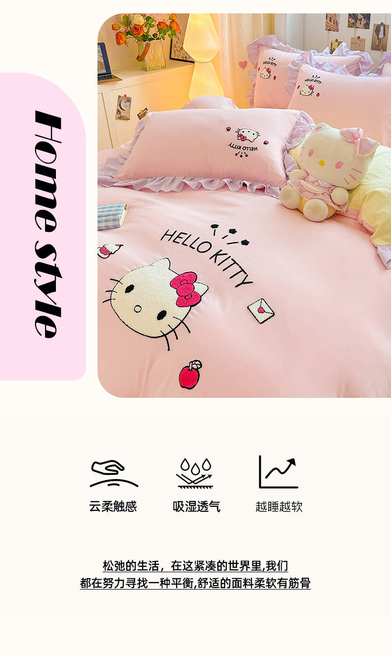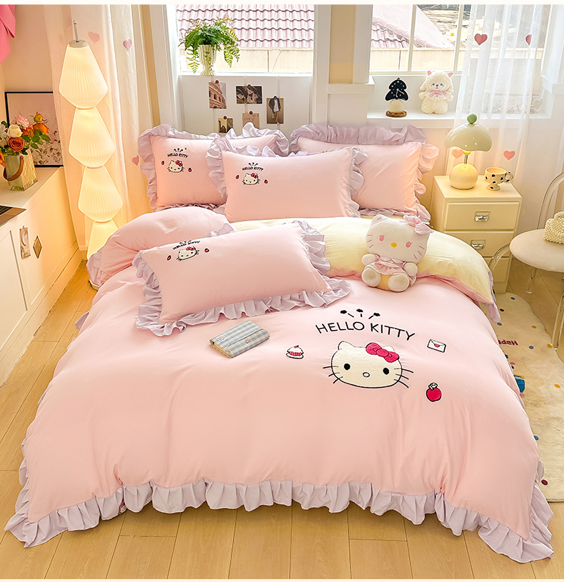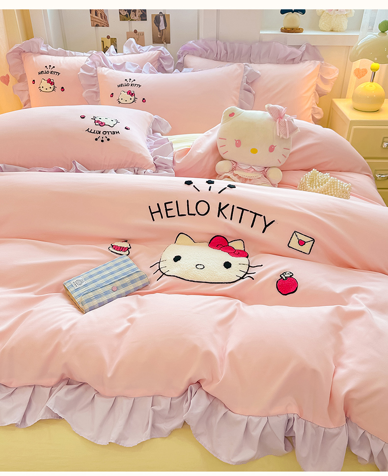 当前位置: 91家纺网 > 商品网购 > 床品套件 > 四件套 > 水洗棉四件套 > 博雅 2025春夏新款毛巾绣三丽鸥水洗棉花边四件套正版授权 毛巾绣-甜美KT猫