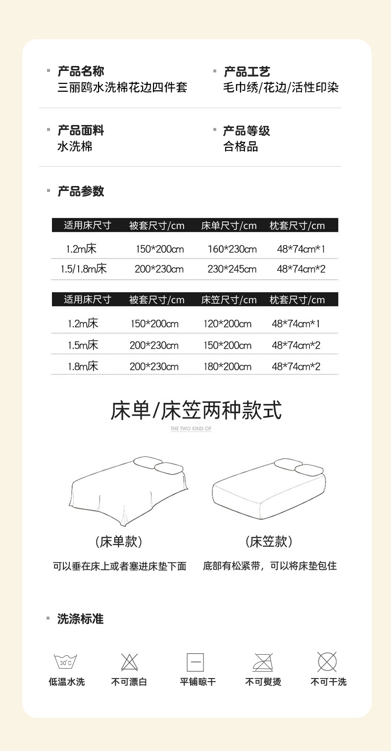 【床笠款】1.5四件套(含标)-被套200x230 | ¥105.00 |