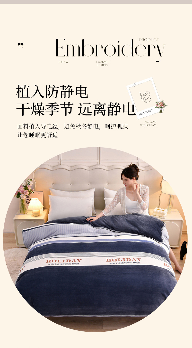 商品名称:绒宴2025新230克特厚款印花牛奶绒单被套法莱绒金貂被套单件 绅士条纹
