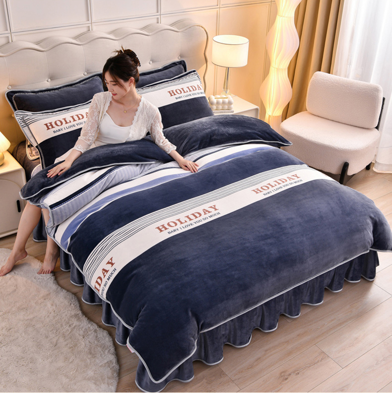 绒宴 2025新款8.5斤牛奶绒金貂法莱绒床裙款保暖四件套 暗香,暗香