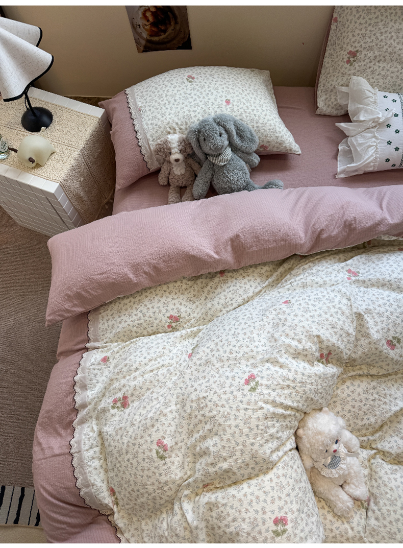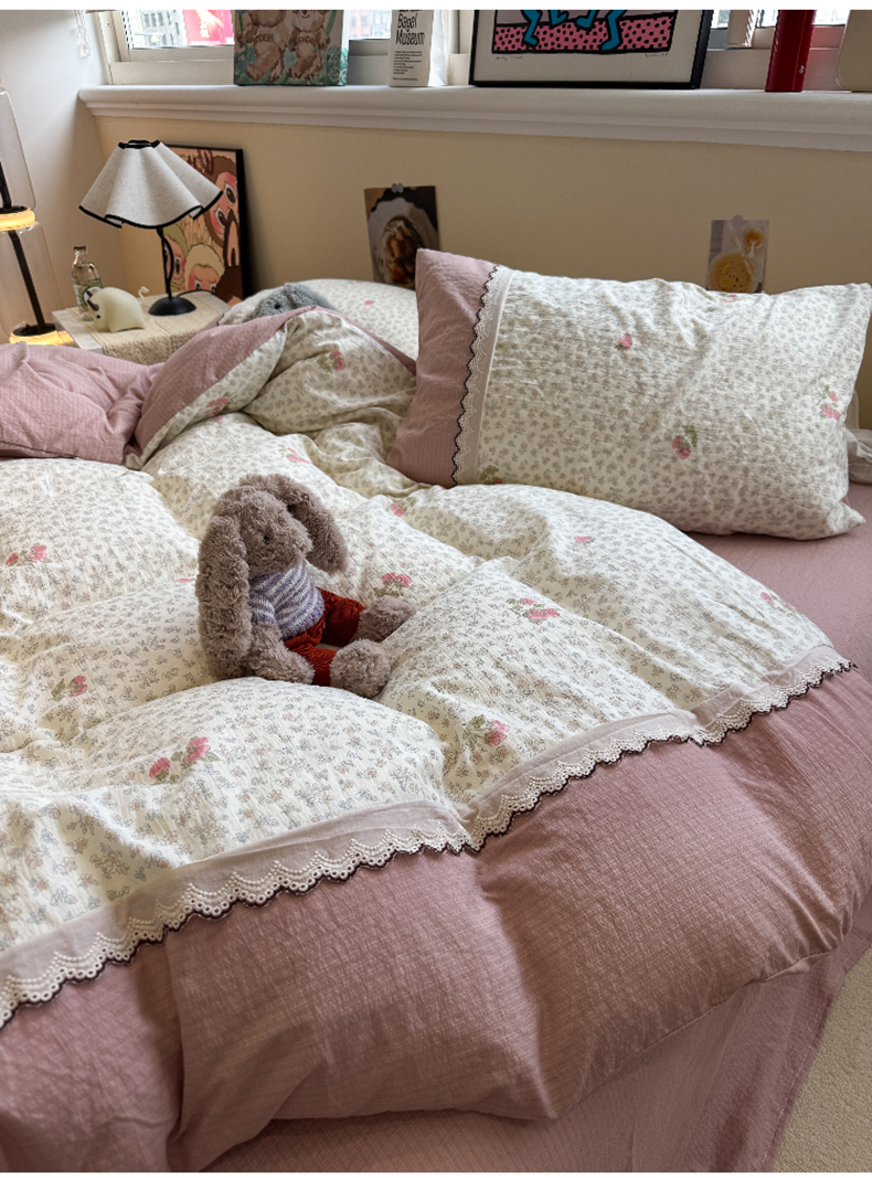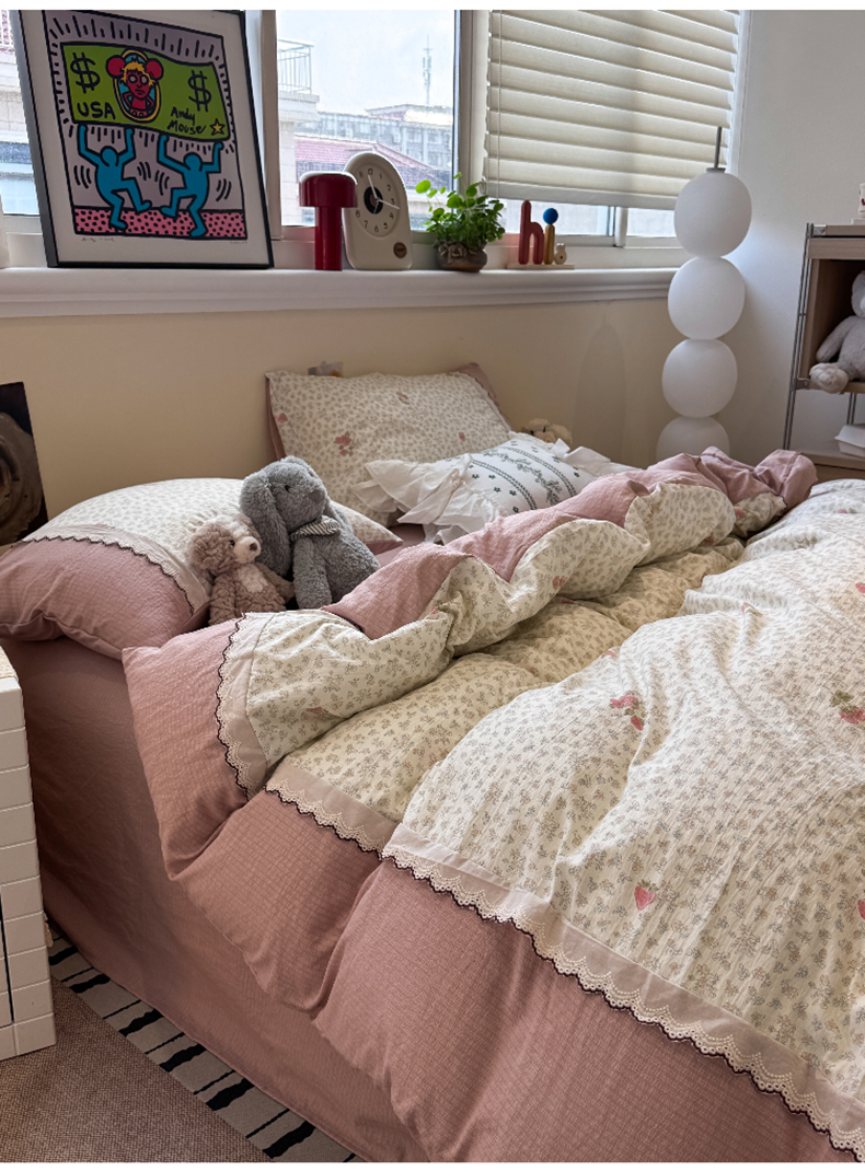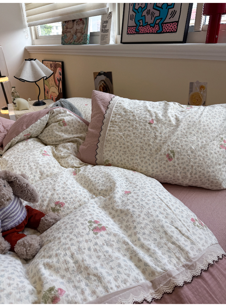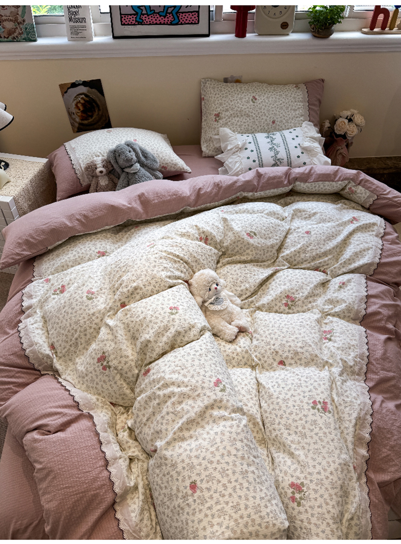 当前位置: 91家纺网 > 商品网购 > 床品套件 > 四件套 > 全棉普通四件套 > 水墨江南 2025新款云感皱皱纱全棉花边四件套-场景二 花边款-花间玫瑰