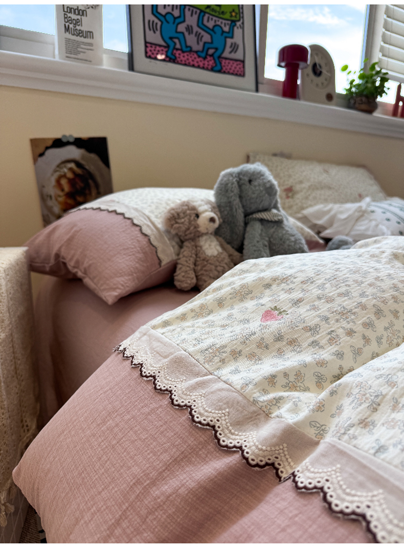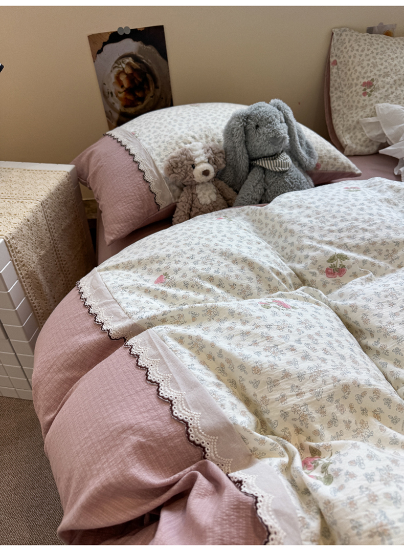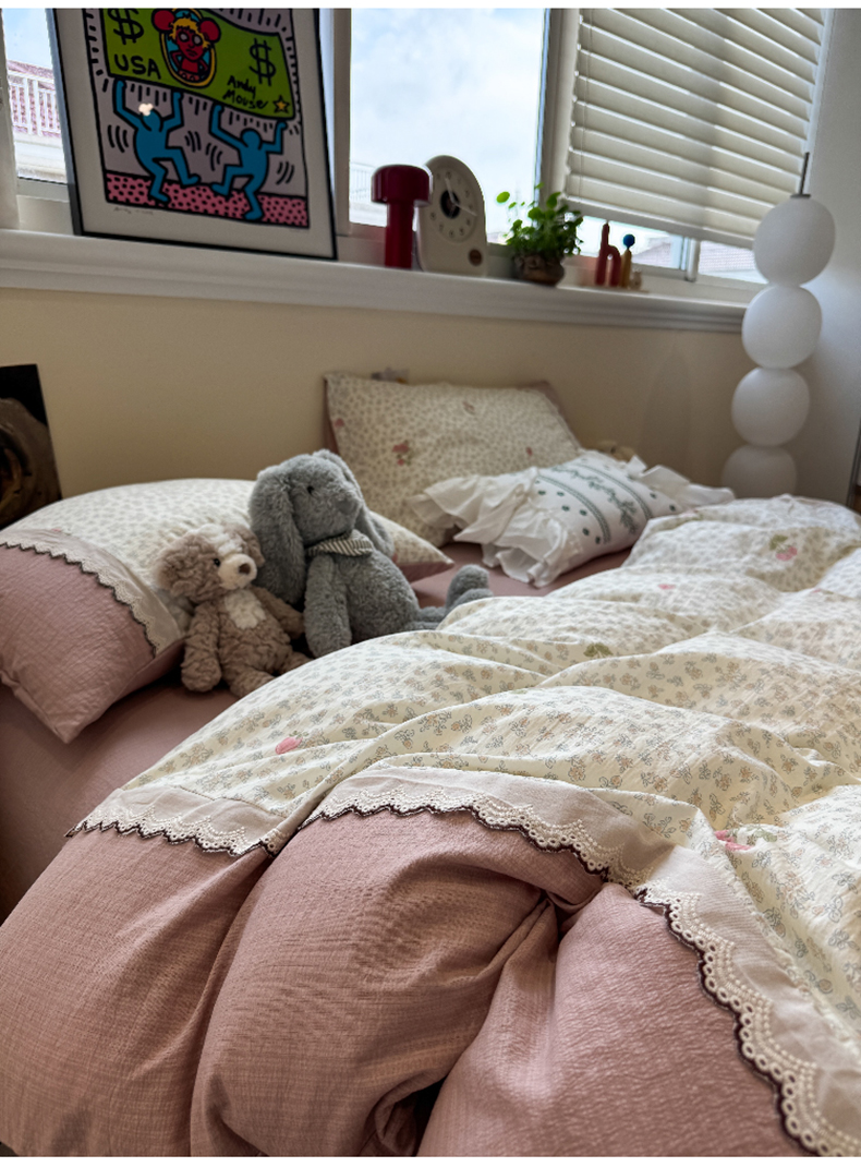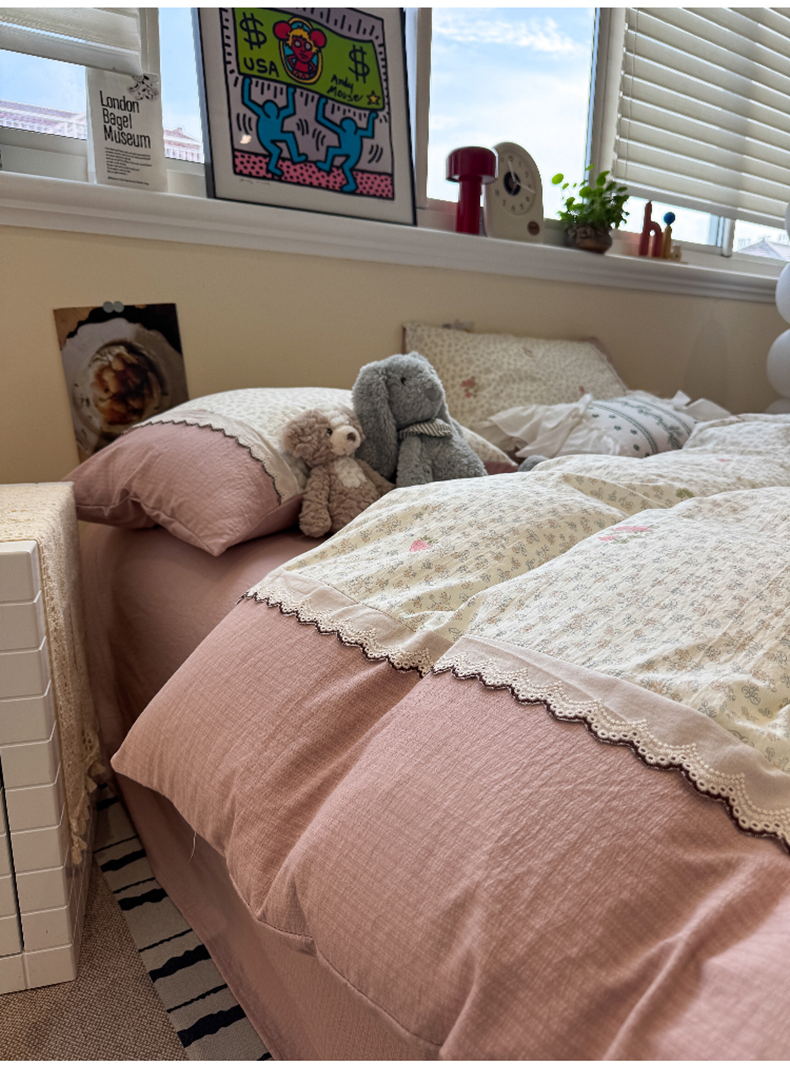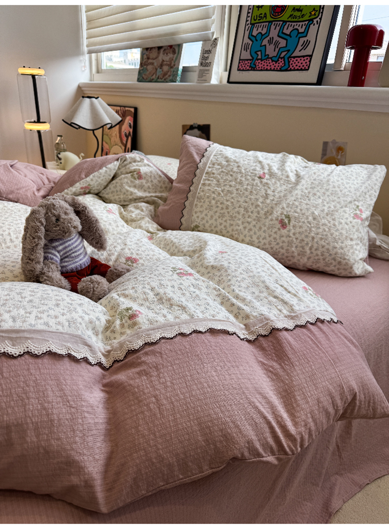 当前位置: 91家纺网 > 商品网购 > 床品套件 > 四件套 > 全棉普通四件套 > 水墨江南 2025新款云感皱皱纱全棉花边四件套-场景二 花边款-花间玫瑰